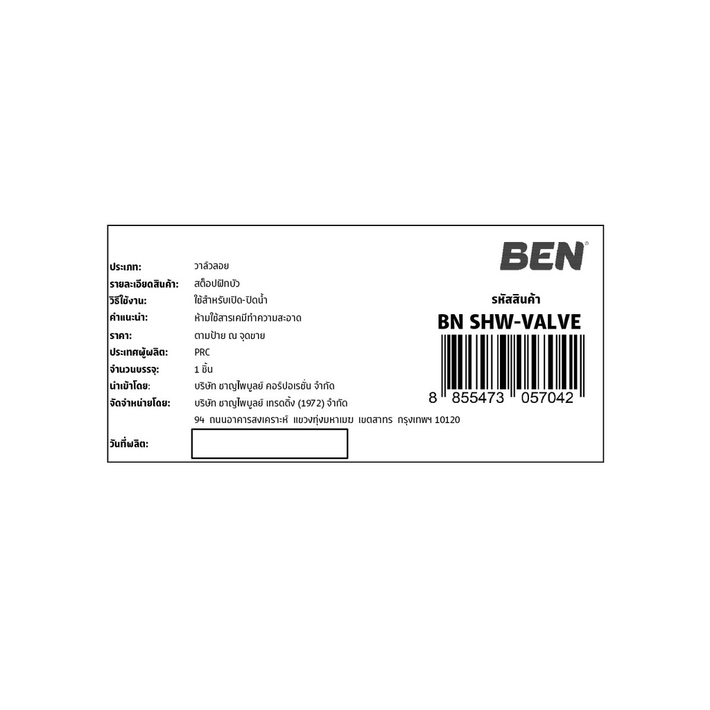 BEN สต็อปฝักบัว BN SHW-VALVE