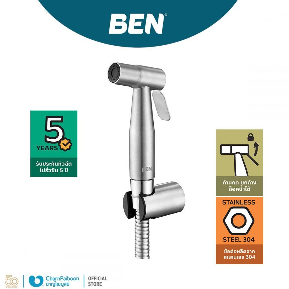 BEN ชุดสายฉีดชำระสแตนเลส หัวฉีดชำระเป็น สแตนเลส 304 มาพร้อมสายเเละขอแขวนครบชุด BN DK22