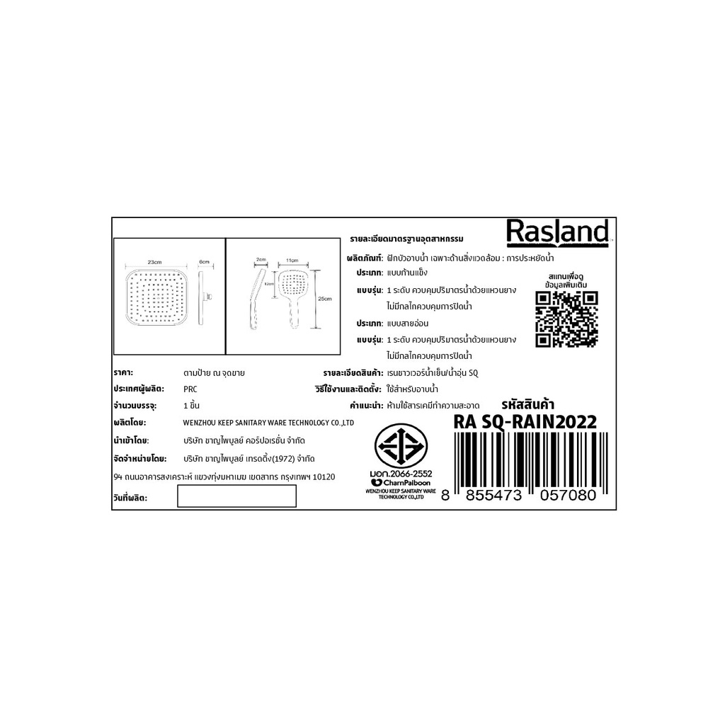 RASLAND เรนชาวเวอร์น้ำเย็น/น้ำอุ่น SQ RA SQ-RAIN2022
