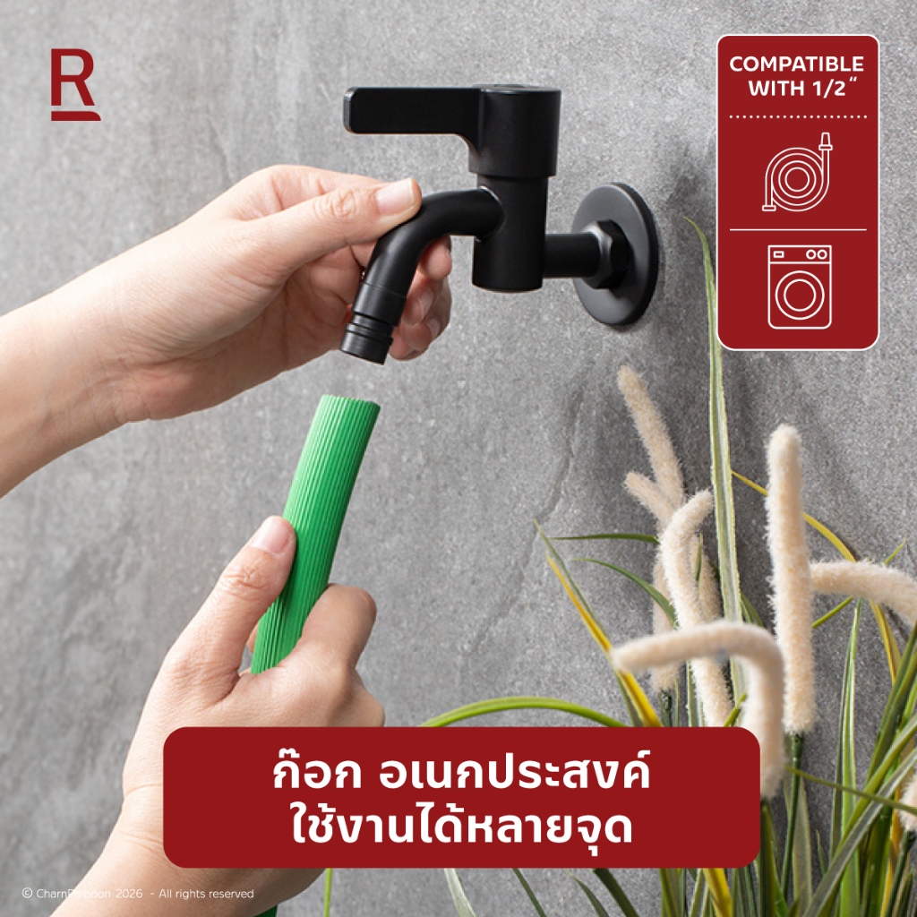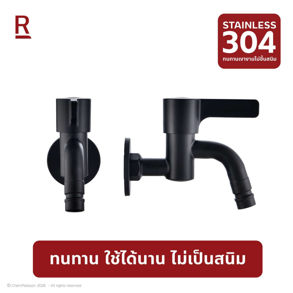 RASLAND BIB-BLK ก๊อกน้ำเย็นเดี่ยว แบบมีข้อต่อสายยาง สแตนเลส ดำ