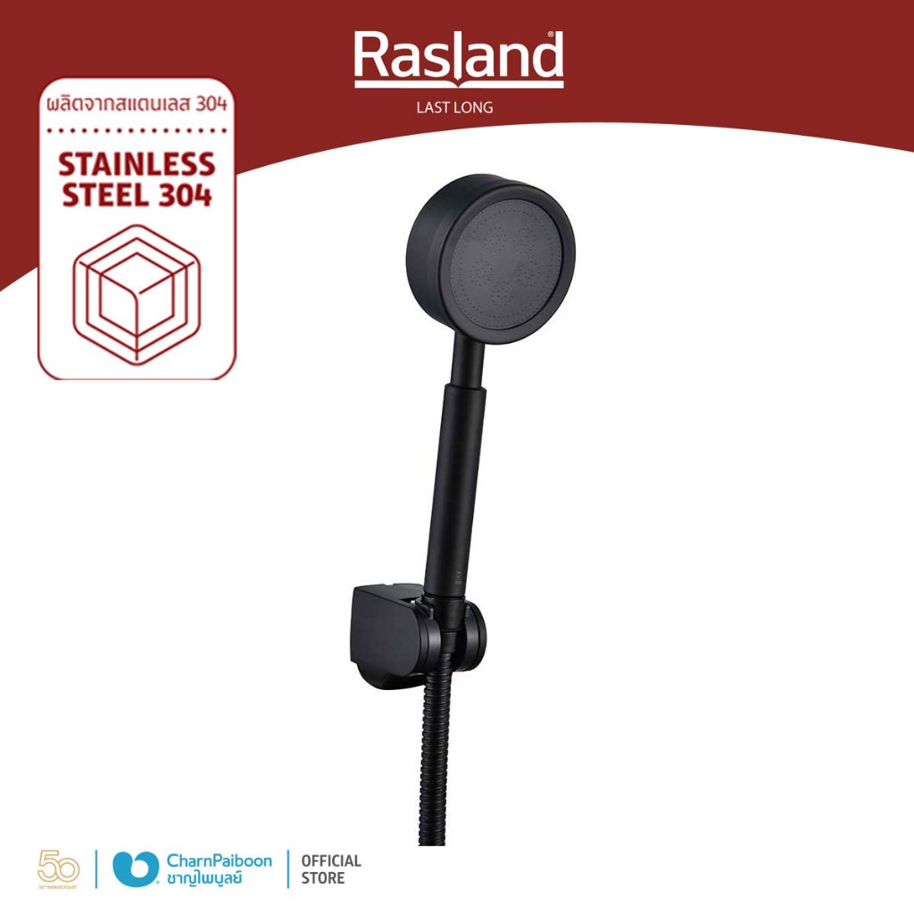 ฝักบัวมือ พร้อมสายและขอแขวนครบชุด RASLAND สายฝักบัวขนาด 150 ซม. วัสดุสแตนเลส 304 ทนทาน ไม่เป็นสนิม | RA D411-D100