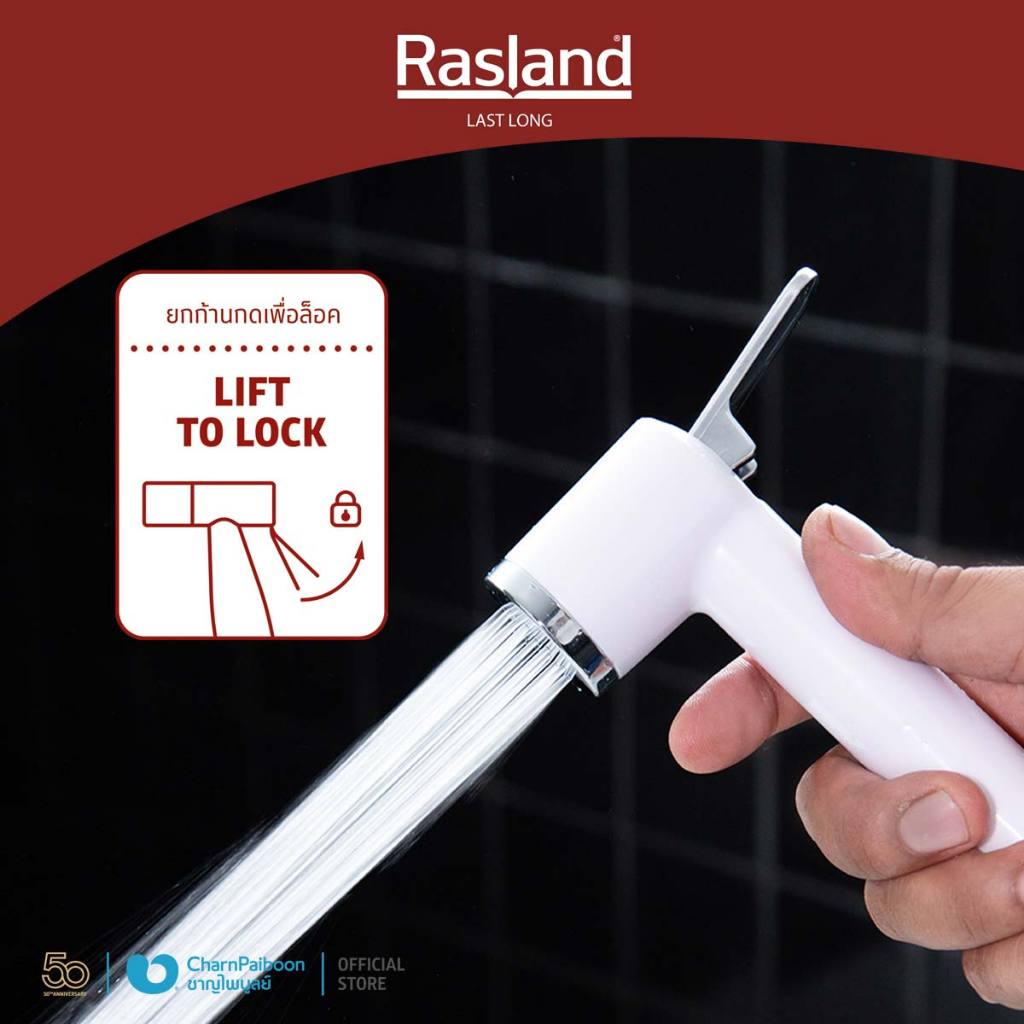 สายฉีดชำระ พลาสติก ABS โครเมียม / ขาว ครบชุดพร้อมสายความยาว120 ซม.ก้านกดสามารถล๊อคน้ำได้ รับประกันหัวฉีดไม่รั่วซึม 1 ปี