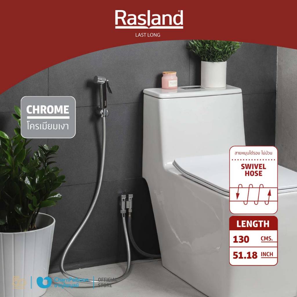 สายฉีดชำระ พลาสติกABS สีโครเมียม RASLAND รับประกันไม่รั่วซึม 1 ปี สายบิดได้ไม่หักงอ ทนแรงดันน้ำสู ง | RA PROJECT-SUPER