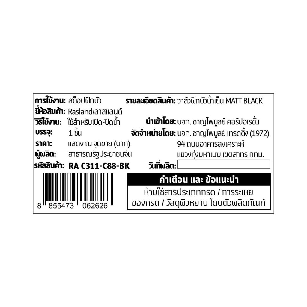 สต็อปฝักบัว วาล์วเปิด-ปิดฝักบัวมือ/เรนทร์ชาวเวอร์น้ำเย็น-น้ำอุ่น สีดำ สแตนเลส304 รับประกันไส้วาล์วน้ำไม่รั่วซึม 10 ปี