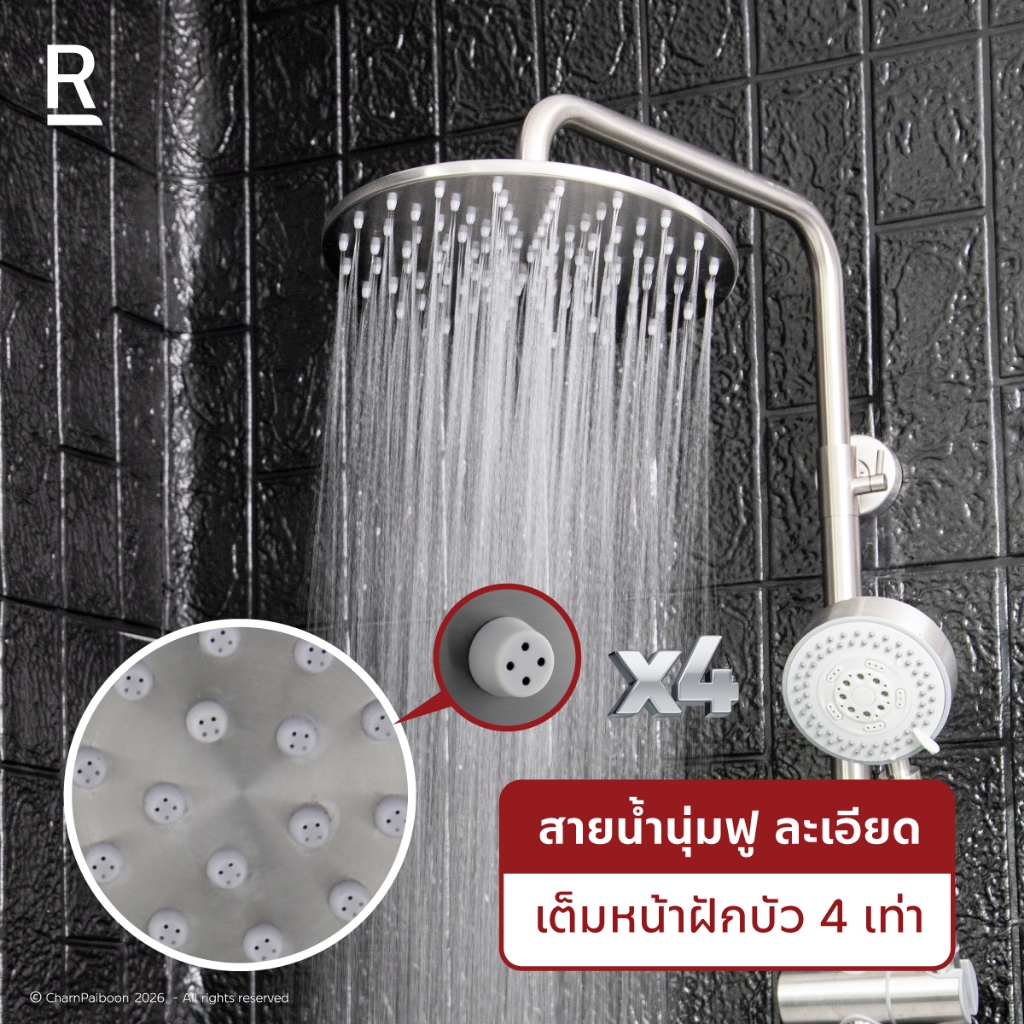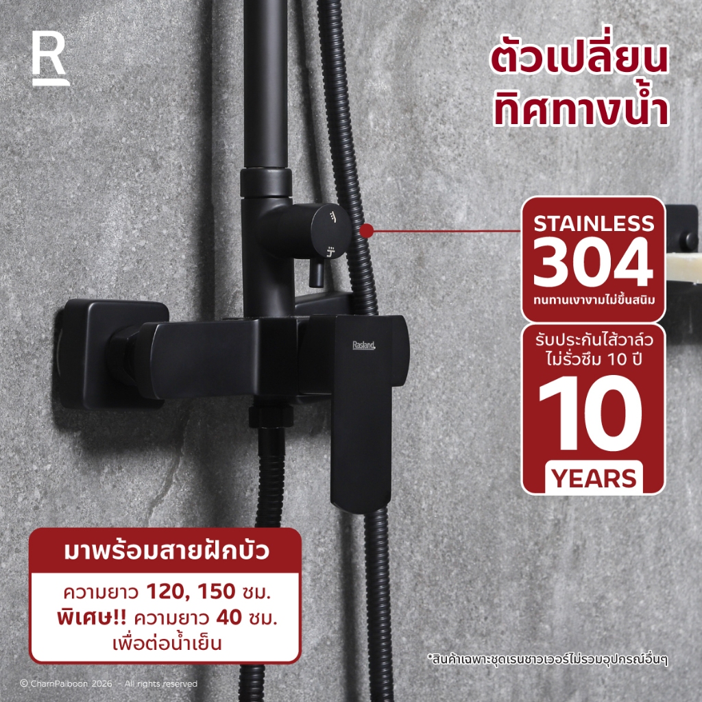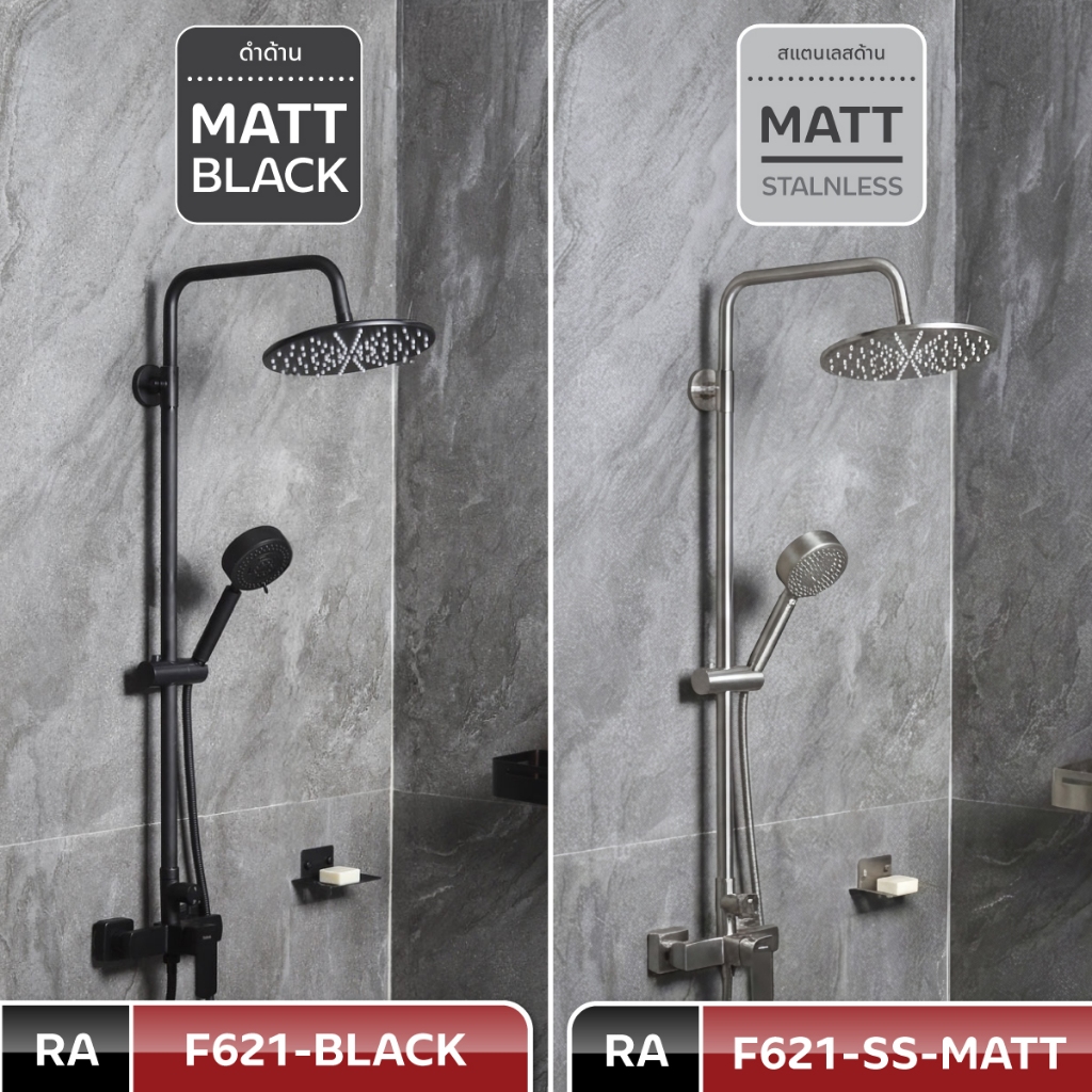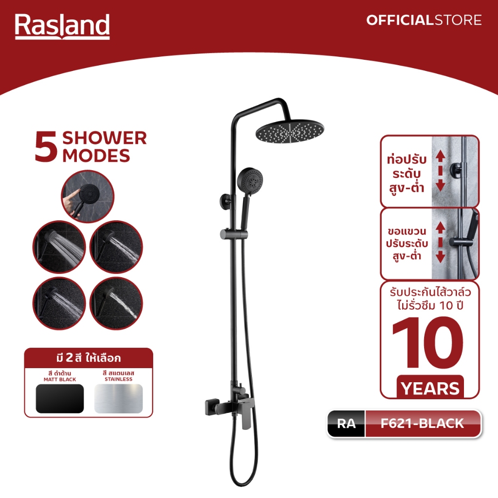 Rasland F621-SS-MATT F621-BLACK เรนชาวเวอร์ผสมน้ำร้อนเย็น ฝักบัว 5 ระบบ สายสแตนเลส 150 cm สแตนเลส 304 สีดำ/สีสแตนเลสด้าน