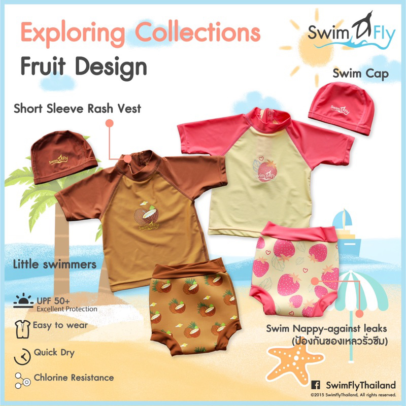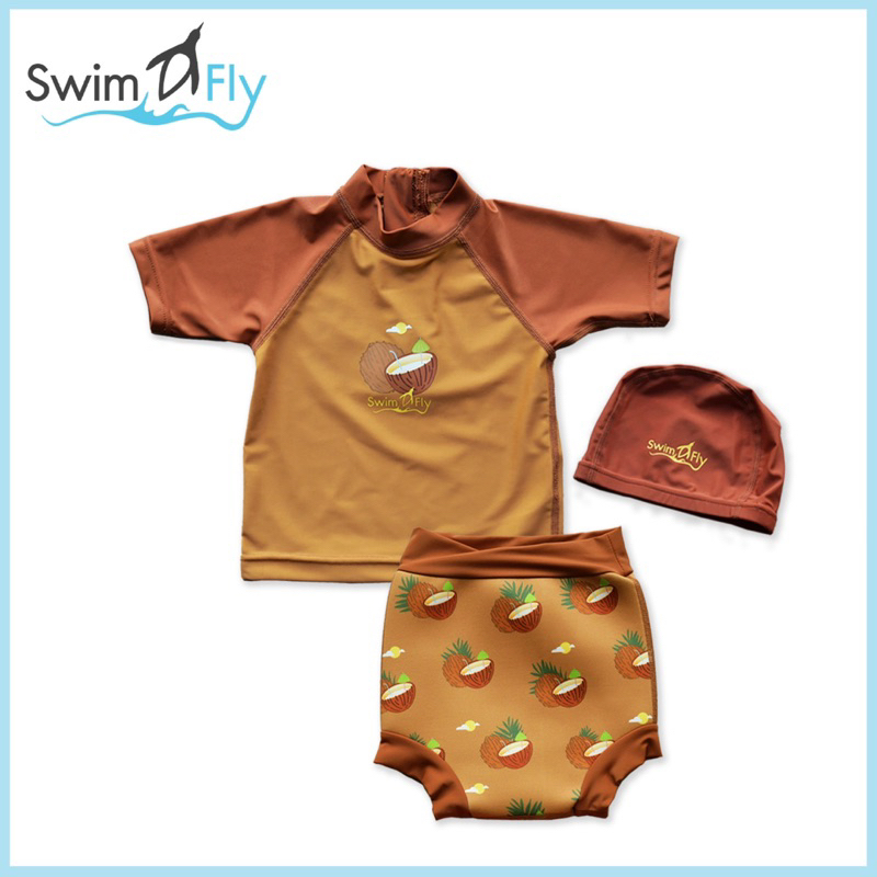 SwimFly ชุดว่ายน้ำเด็กเล็ก พร้อมกางเกง nappy และหมวกว่ายน้ำ