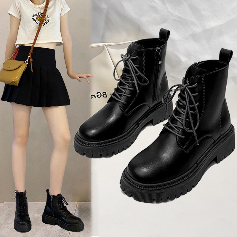 ⚡ไทยพร้อมส่ง⚡รองเท้าบูทสั้นผู้หญิงสไตล์เกาหลี รองเท้าบูทผู้หญิงทันสมัย หัวมน ลำลองและหลากหลาย