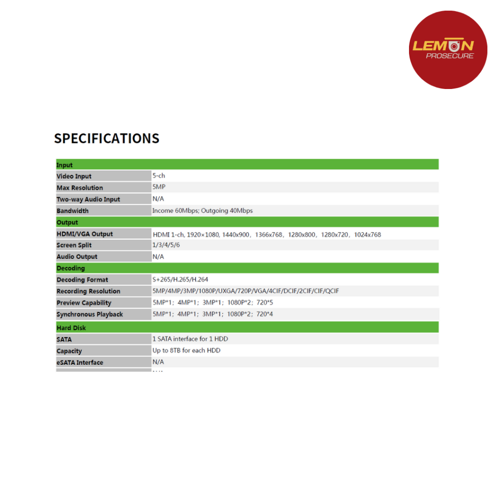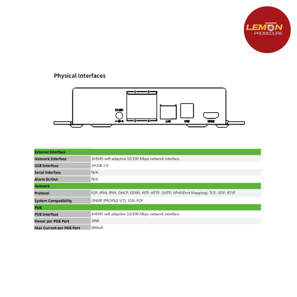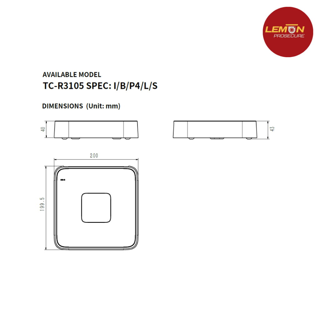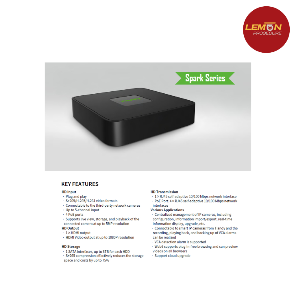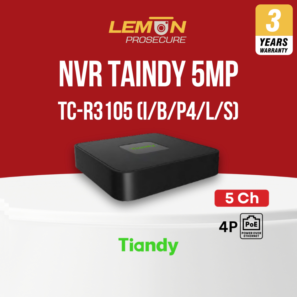 เครื่องบันทึกกล้องวงจรปิด NVR Tiandy TC-R3105 (I/B/P4/L/S) 5CH PoE H.265 รองรับ ONVIF
