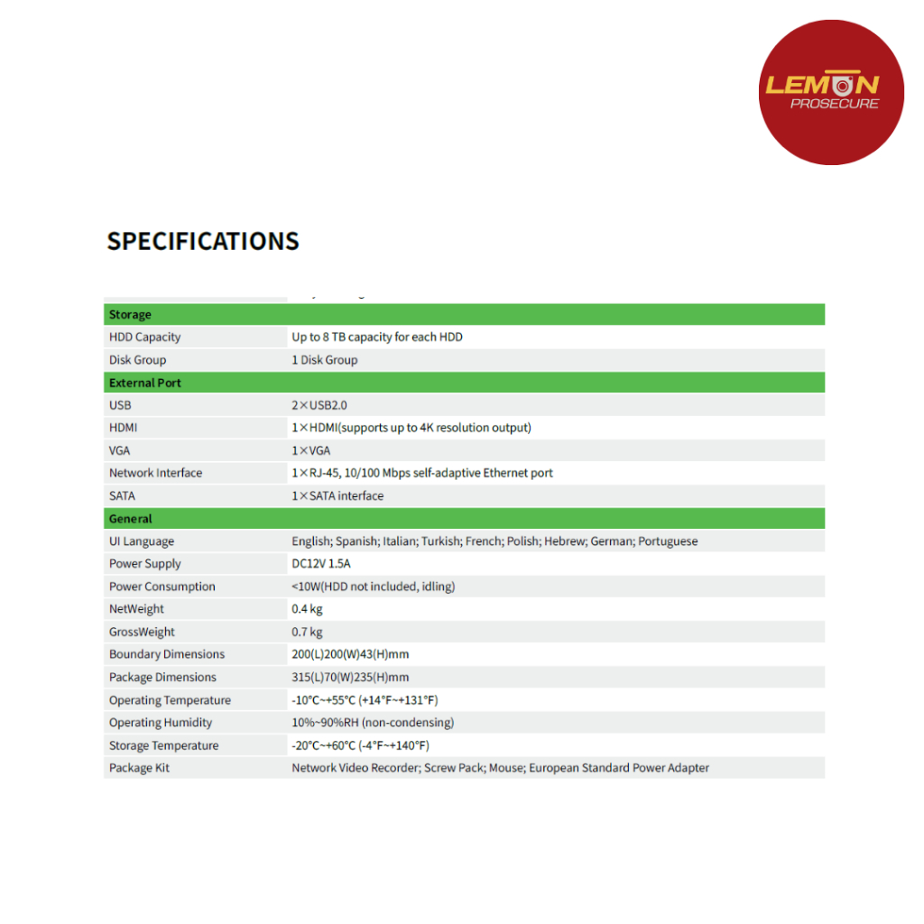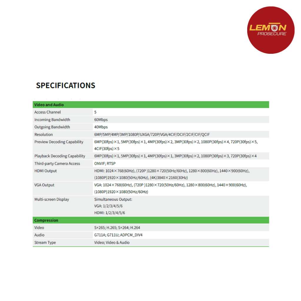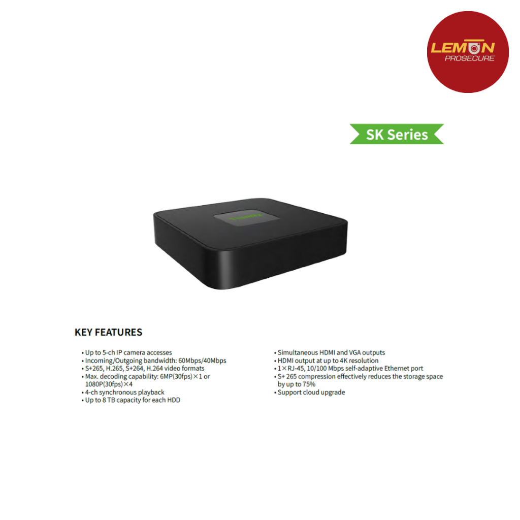 Tiandy TC-R3105 I/B/L/EU ไม่มี POE 5CH NVR เครื่องบันทึกกล้องวงจรปิด IP สูงสุด 6MP รองรับ HDD 8TB