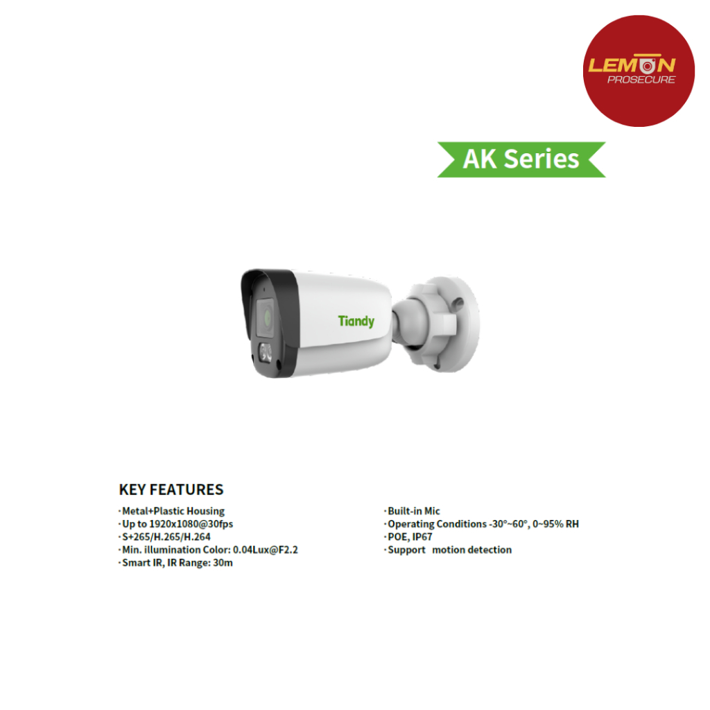 กล้องวงจรปิด TC-C32ZN Spec:I3/E/Y/2.8mm Bullet 2MP Fixed พร้อมไมค์ในตัว กันน้ำ IP67 PoE