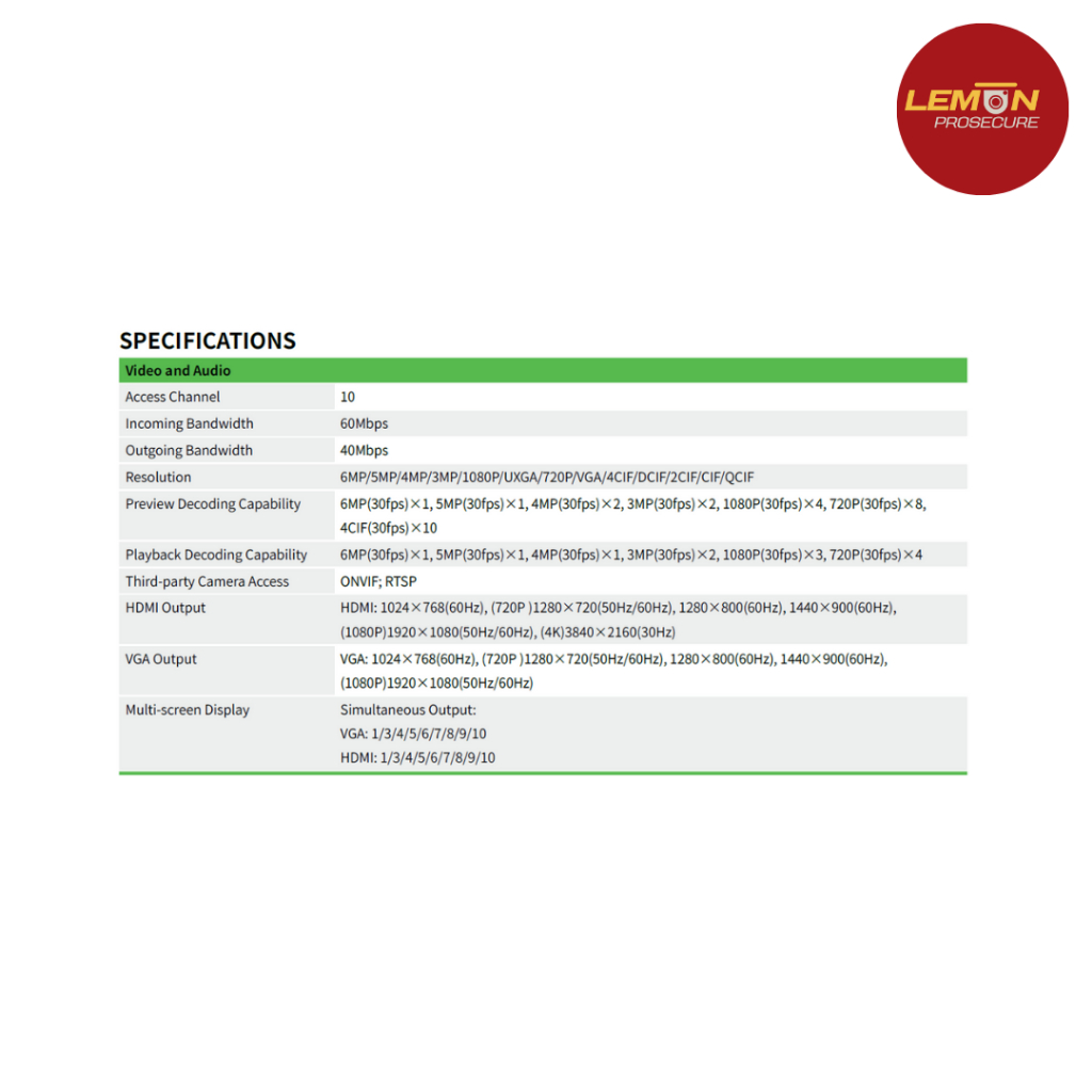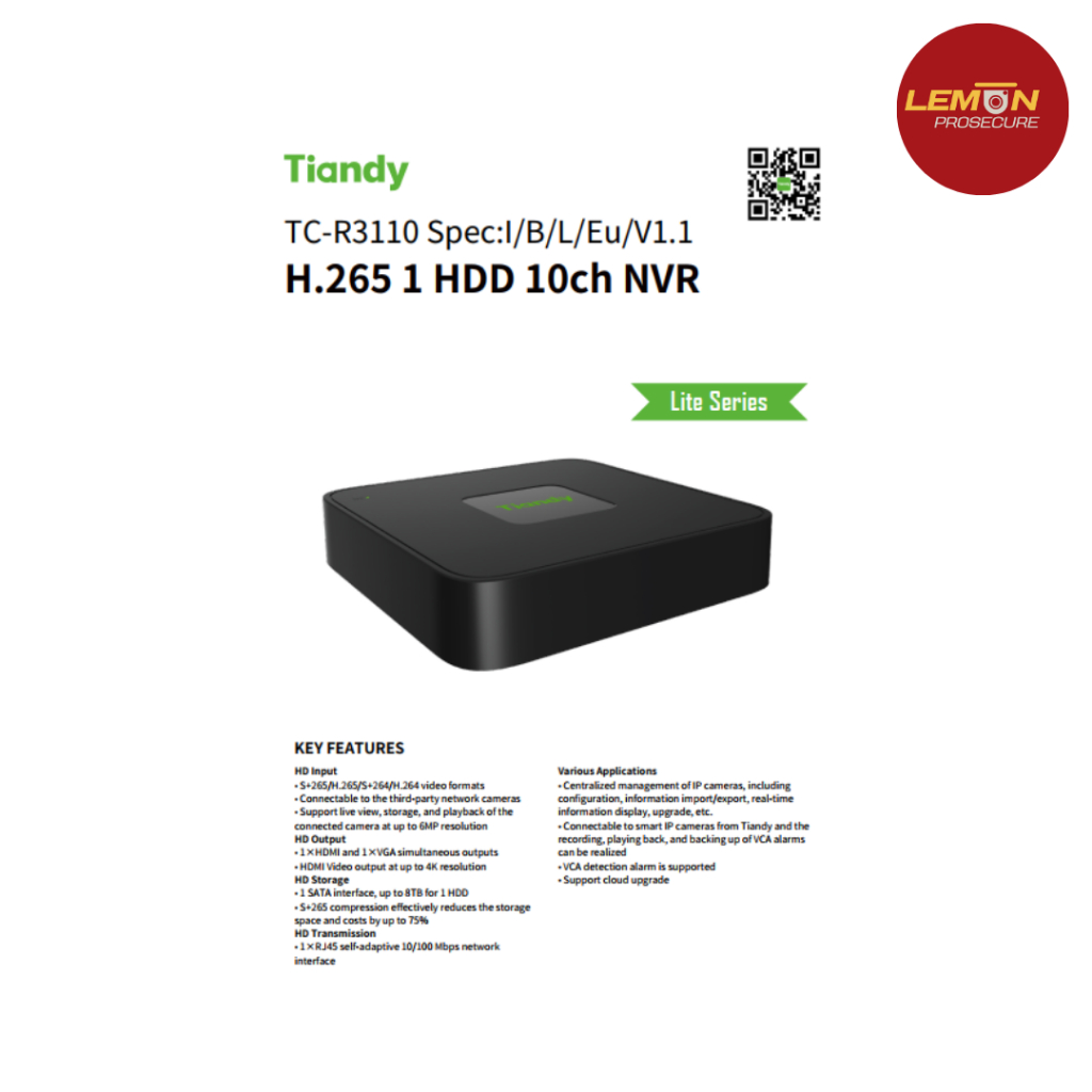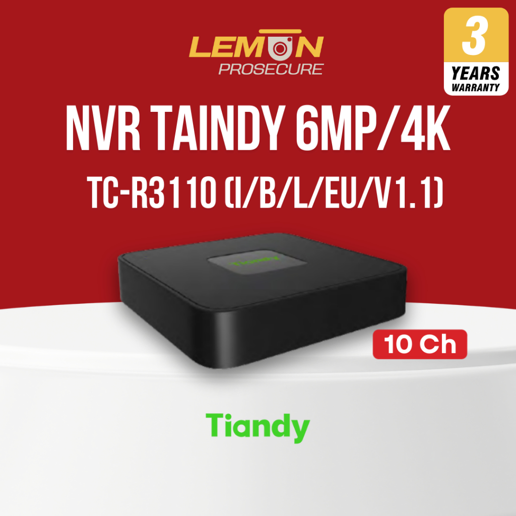 Tiandy TC-R3110 NVR 10CH (I/B/L/Eu/V1.1) เครื่องบันทึกกล้องวงจรปิด IP รองรับ 6MP/4K HDD 8TB H.265