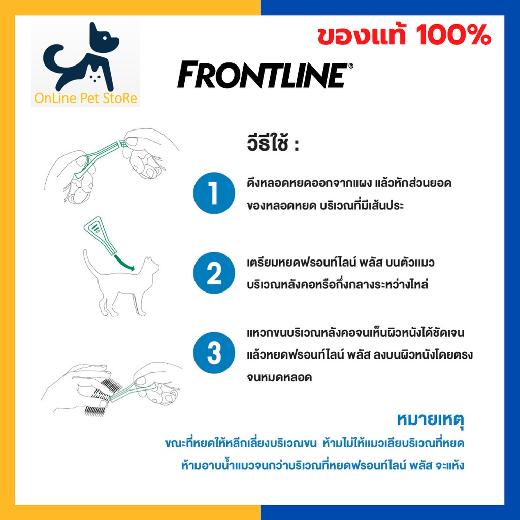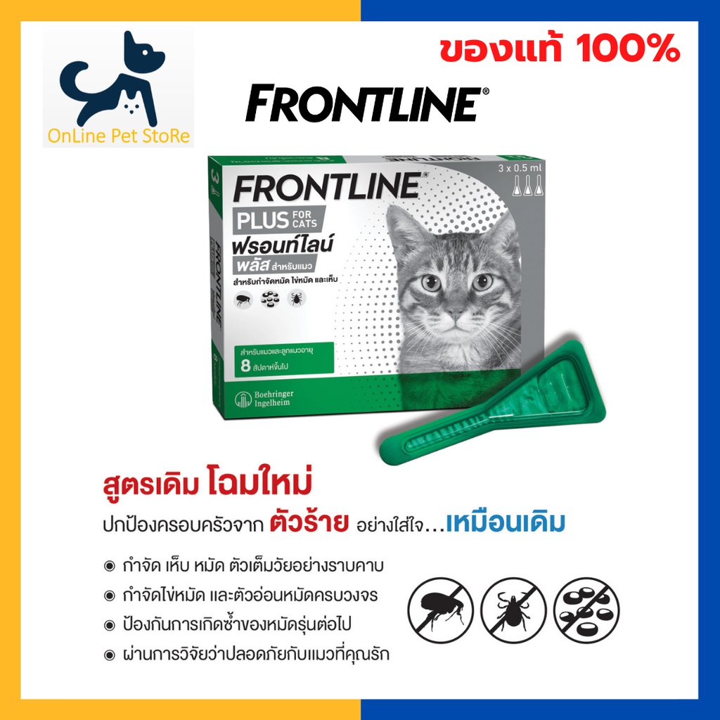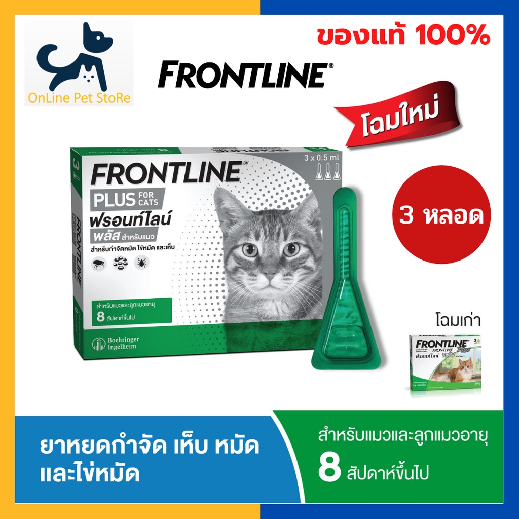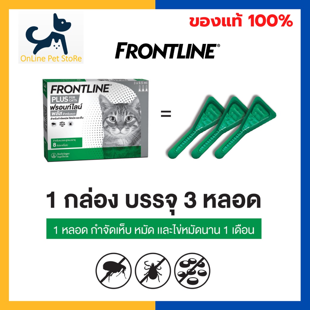 หมดอายุ 5/2028 +หยดเห็บหมัด แมว+ Frontline Plus Cat แมวอายุ >2 เดือน ขึ้นไป หยดหลังคอสำหรับแมว กำจัดเห็บ หมัด ไข่หมัด