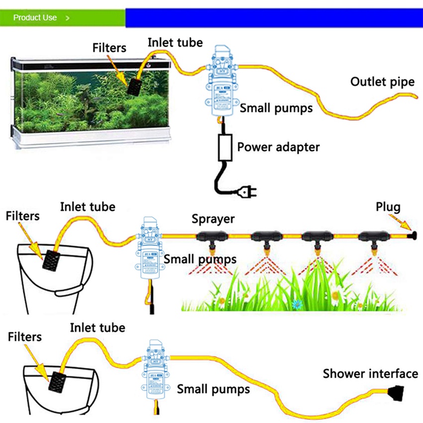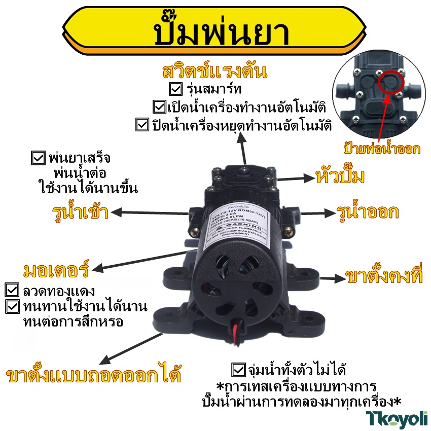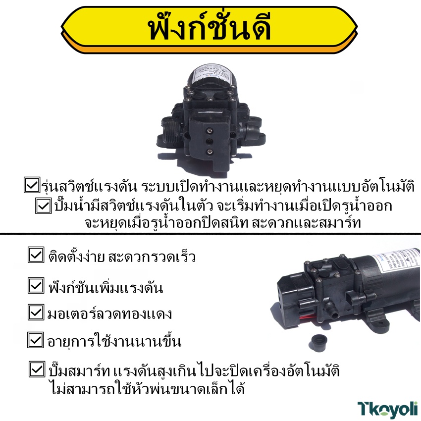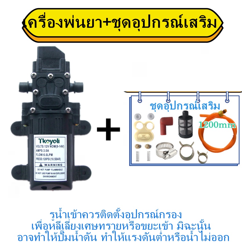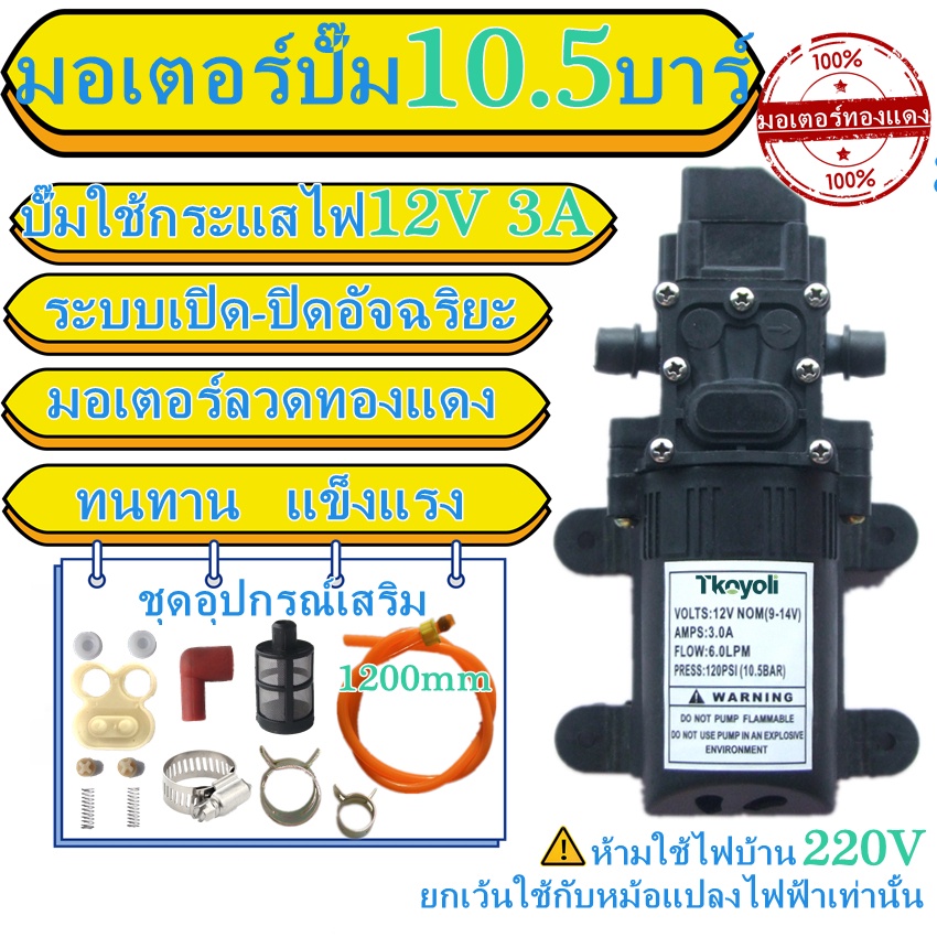 ปั๊มน้ำไดอะแฟรม DC 12V 120PSI ปั๊มน้ำโซล่าเซลล์ ปั๊มพ่นยา 10.5BAR