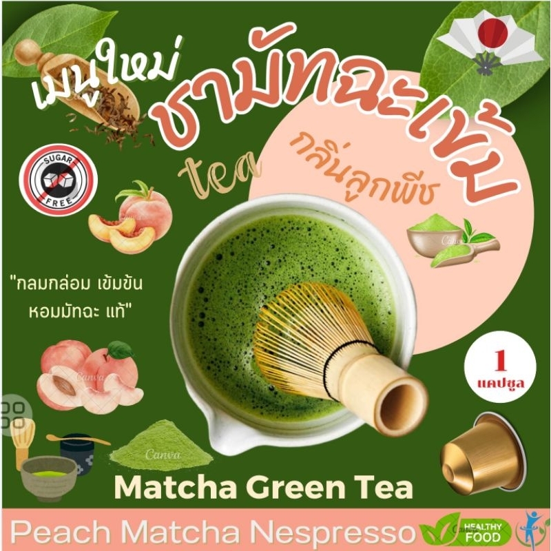 Nespresso เพียวมัทฉะ กลิ่นลูกพีช แคปซูล เข้มข้น จากชามัทฉะ เข้มข้น Peach Matcha Green Tea ( 1 แคปซูล)
