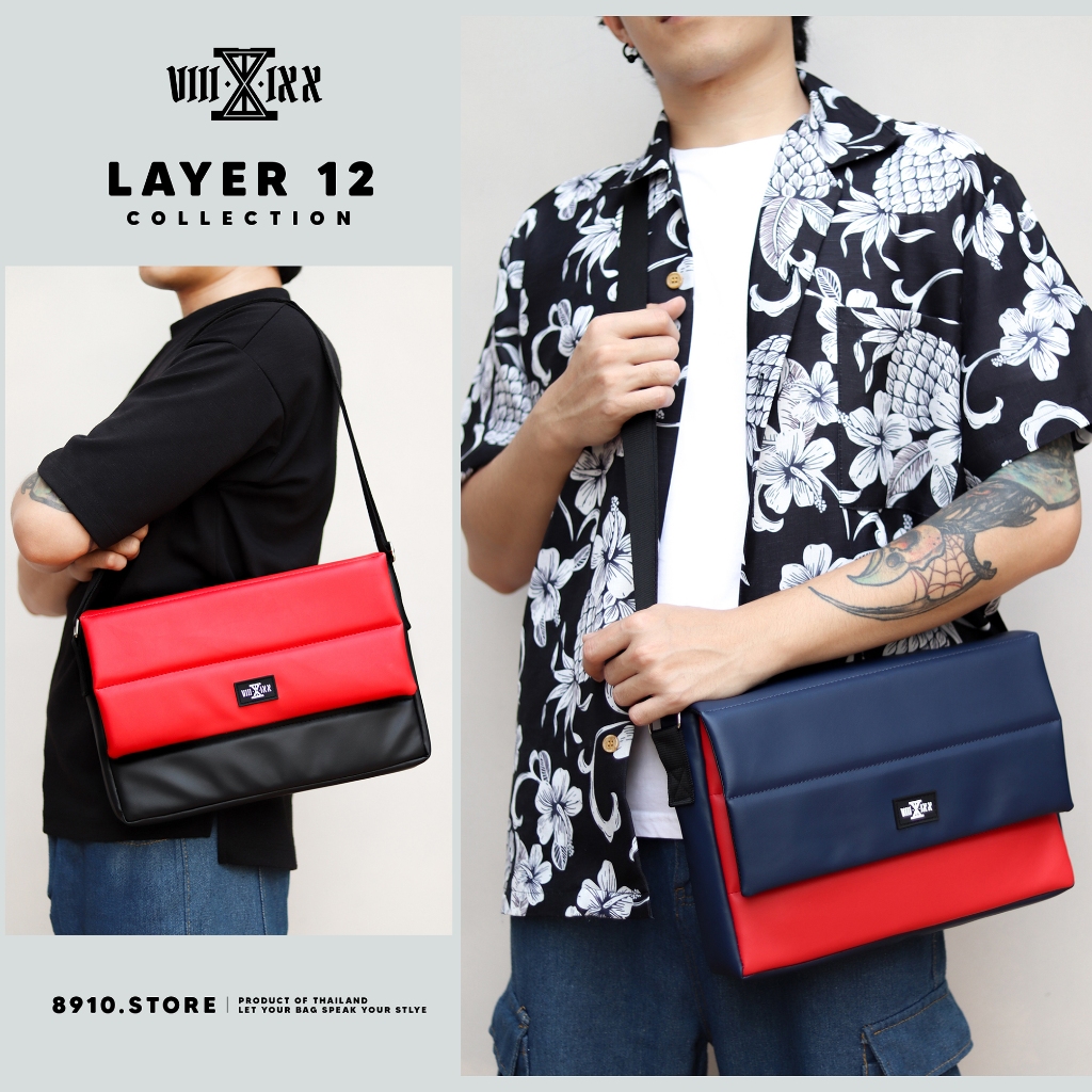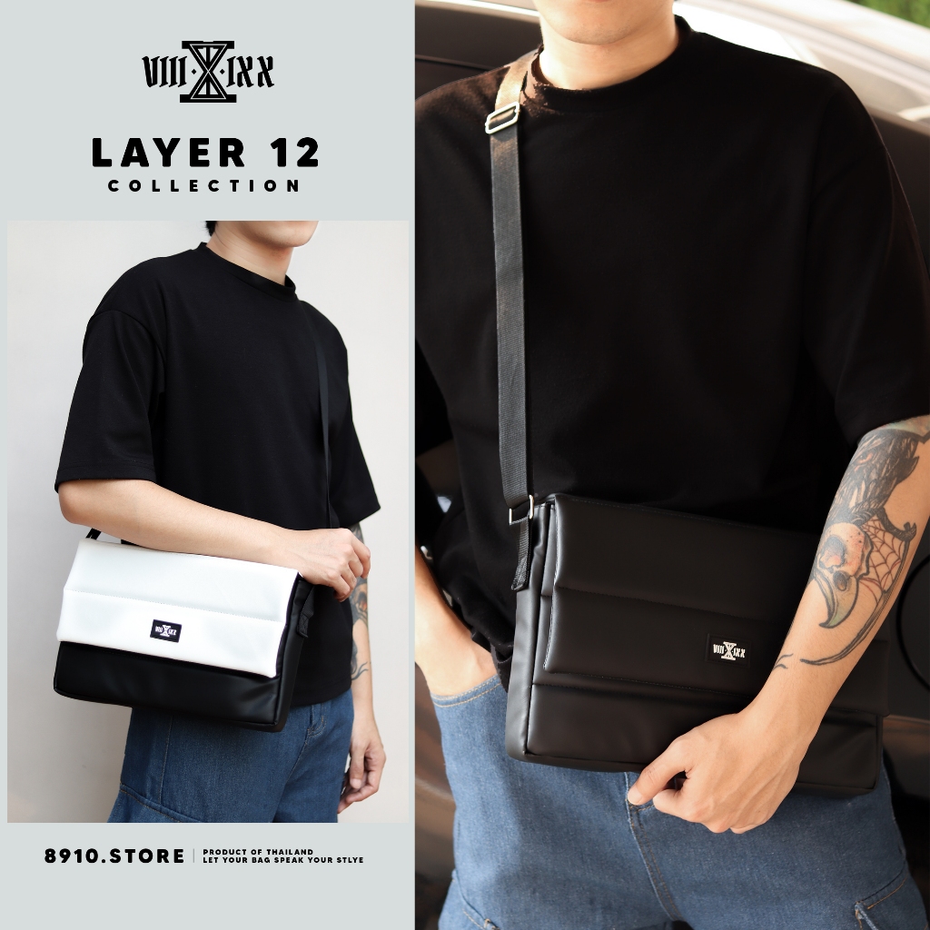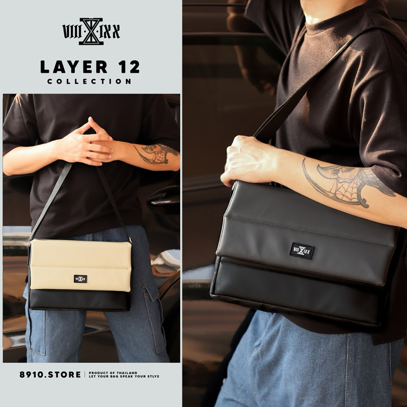 (มีสีใหม่) LAYER 12" มี 8 สี แบรนด์ 8910 กระเป๋าหนัง สะพายข้าง ทรงนวมหนา ใส่ ipad 12 นิ้ว แบรนด์ไทย หนังกันน้ำ