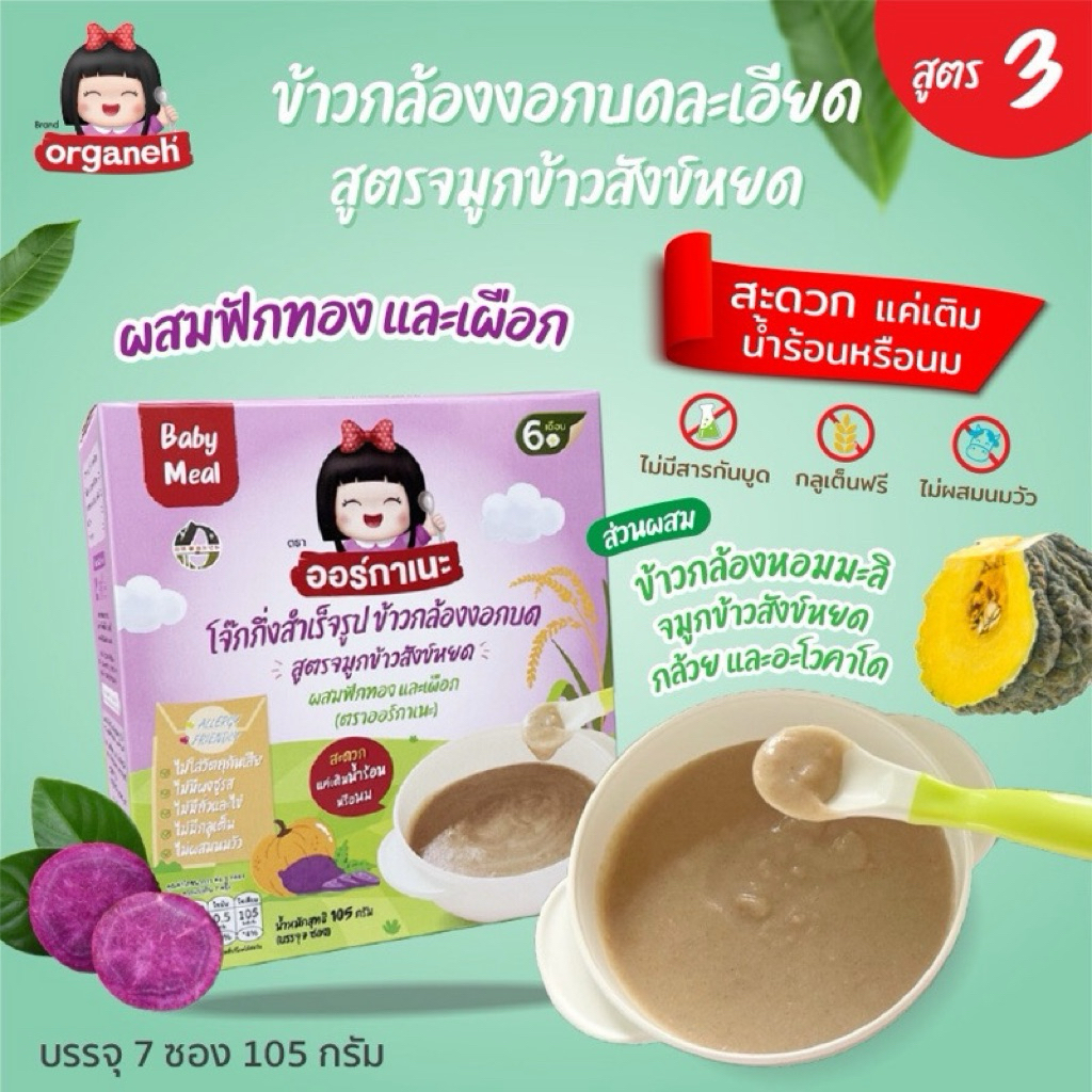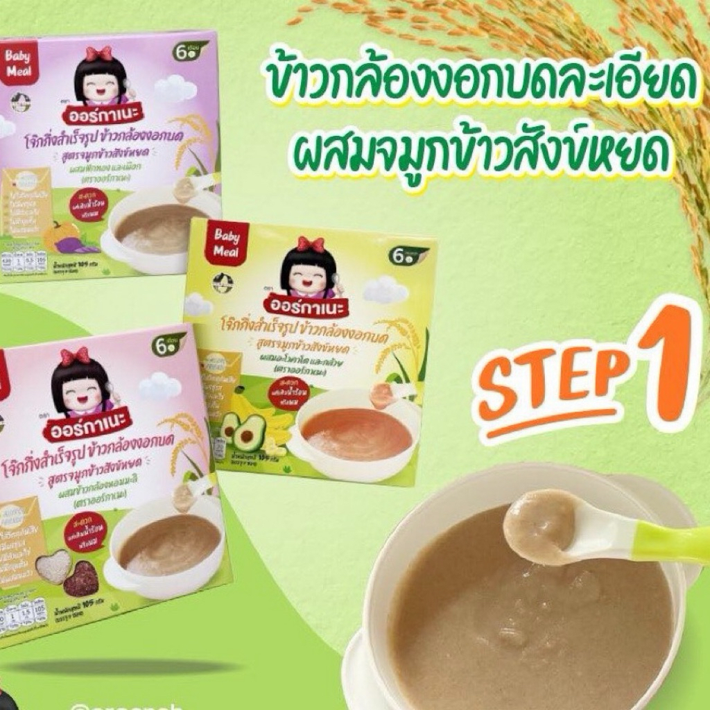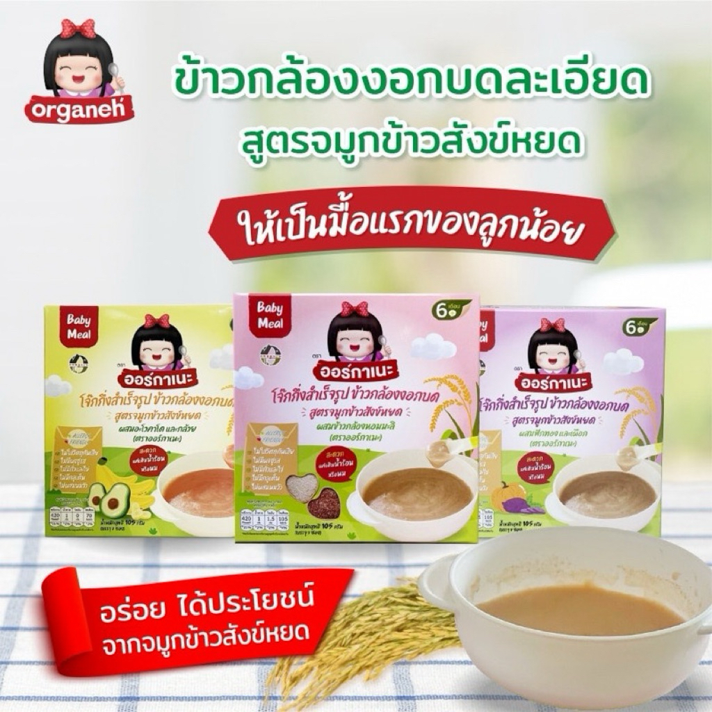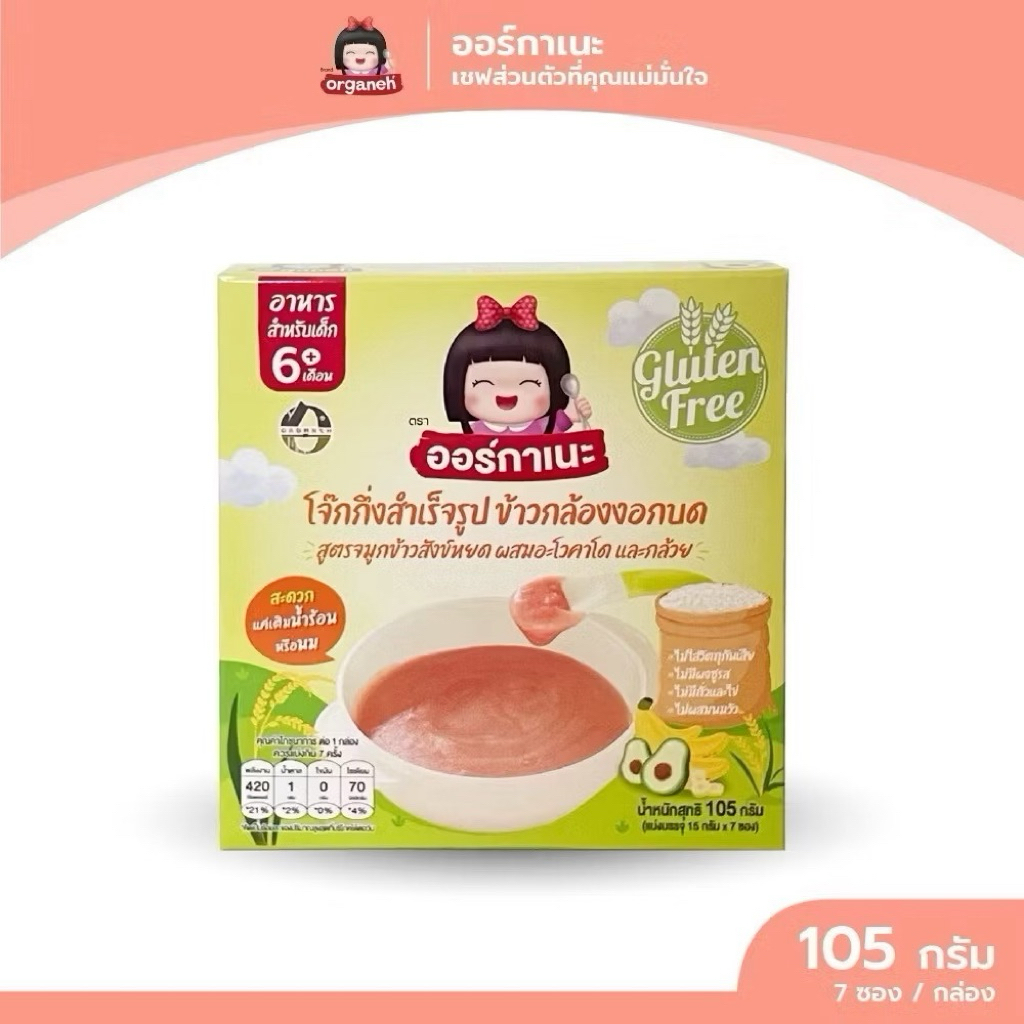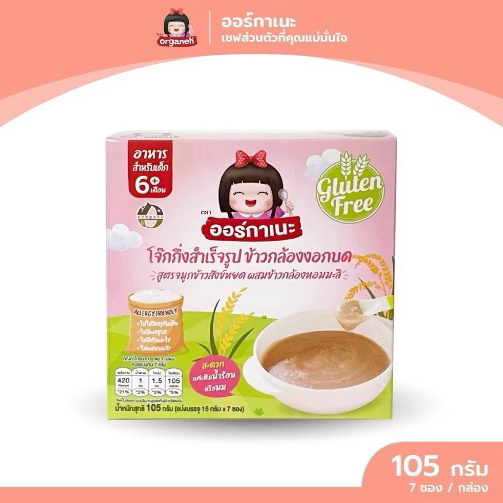 Organeh ออร์กาเนะ โจ๊กข้าวกล้องงอกบดละเอียด สูตรจมูกข้าวสังข์หยด สำหรับเด็ก 6 เดือนขึ้นไป