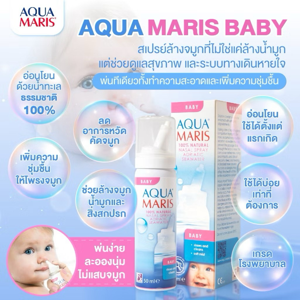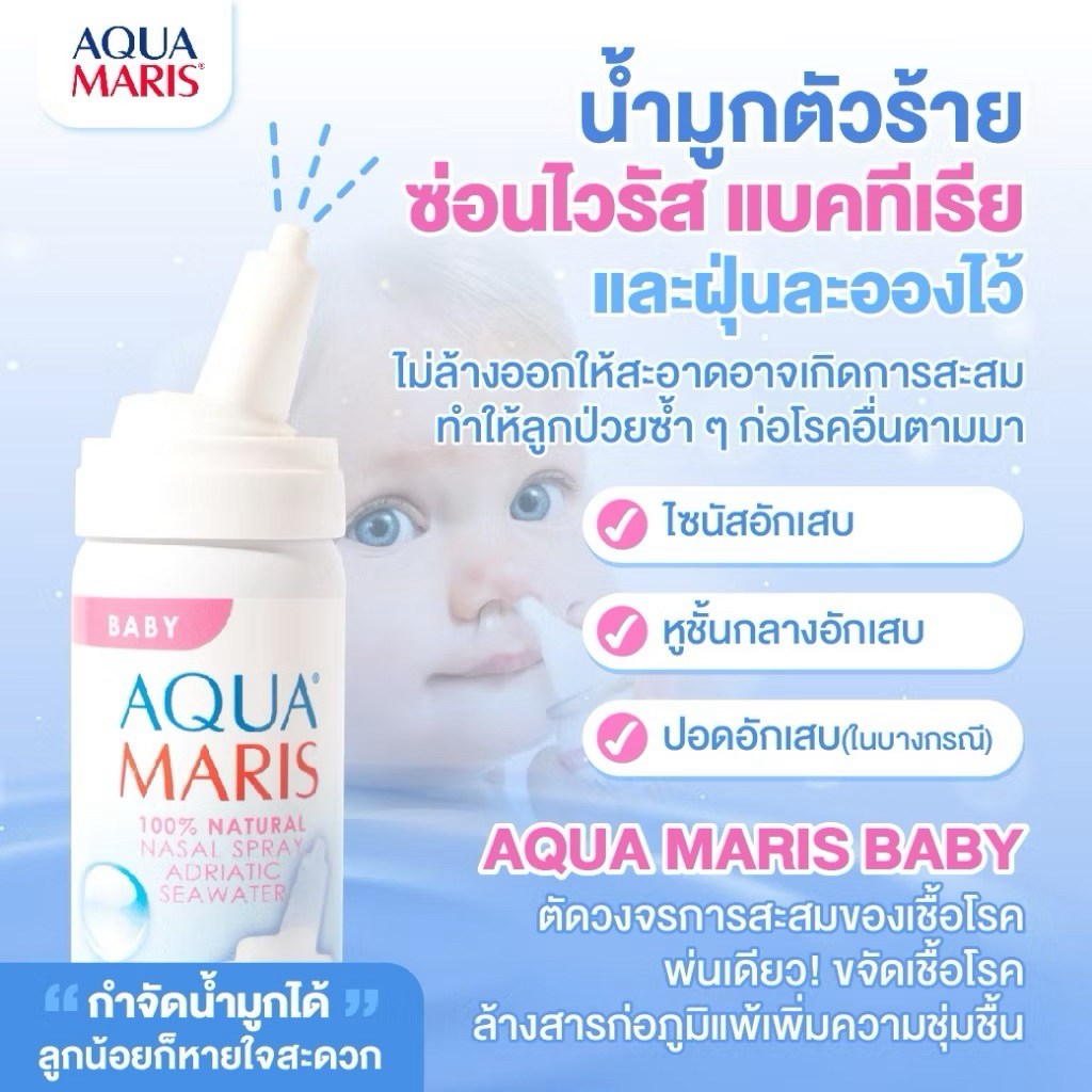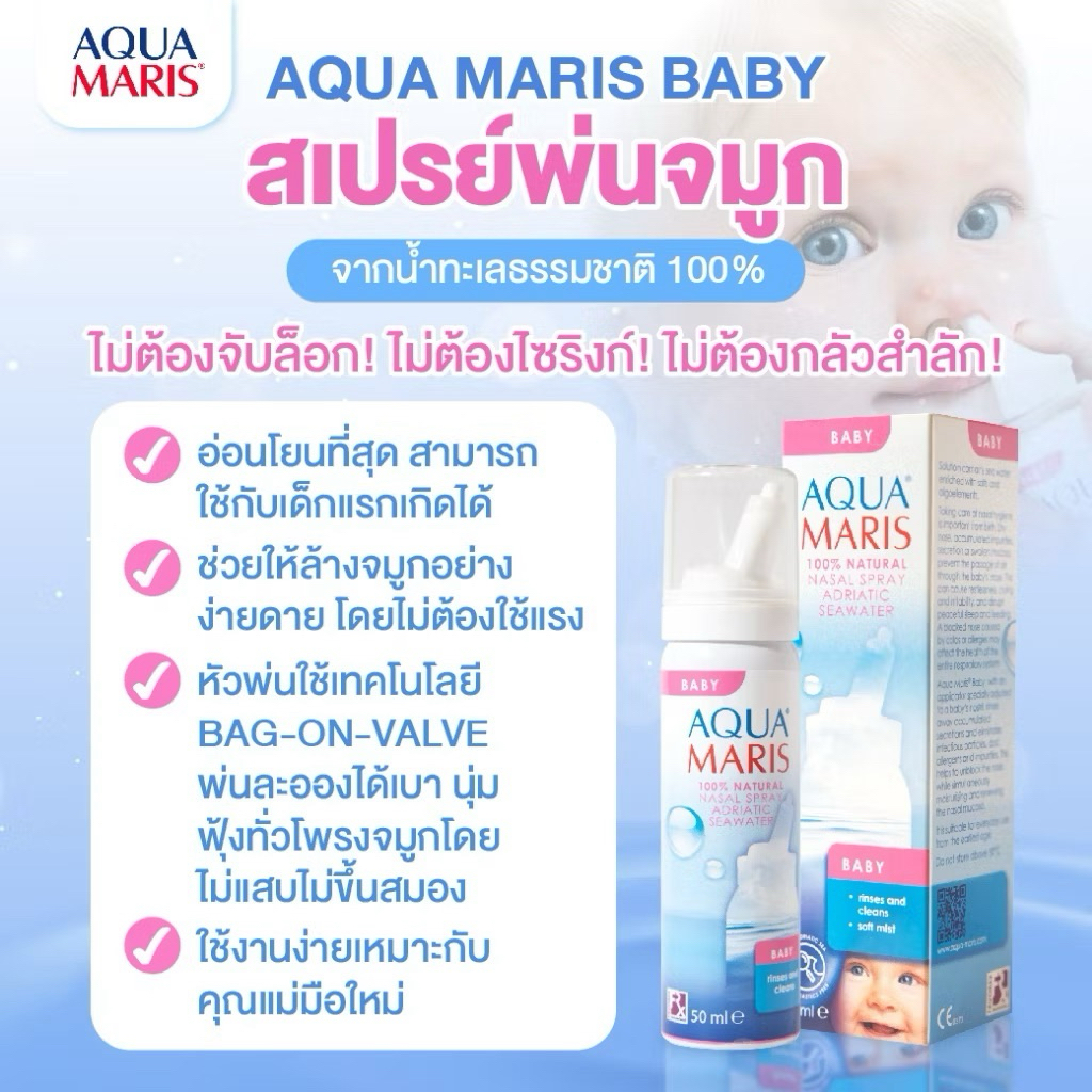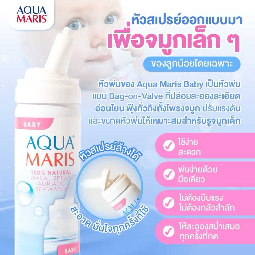 ของแท้ ล็อตใหม่(ใช้ได้ตั้งแต่แรกเกิด)Aqua Maris Baby สเปรย์พ่นจมูก ลดน้ำมูก ล้างจมูก หายใจโล่ง ดีมาก