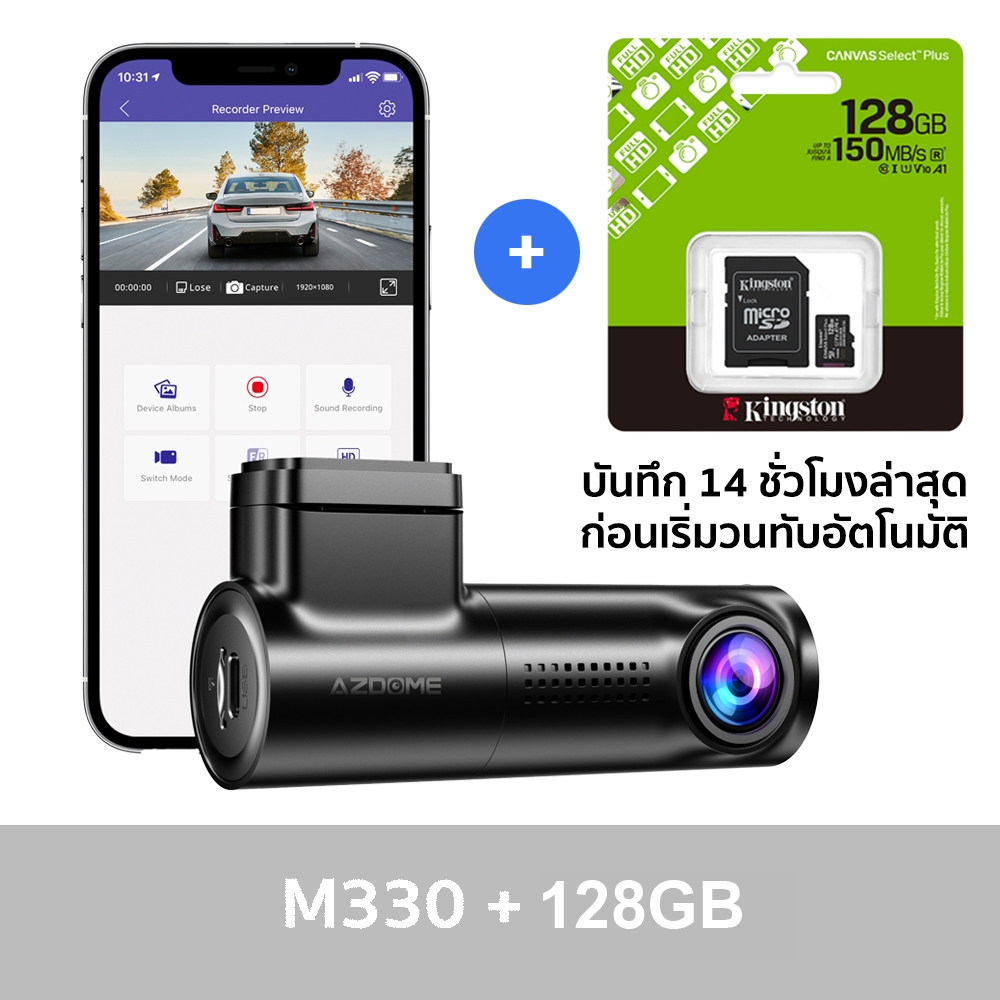 กล้องติดหน้ารถ AZDOME M330 Gen2 WiFi กล้องหน้ารถ Full HD ทนร้อนสูง Super Capacitor รับประกัน 1 ปี