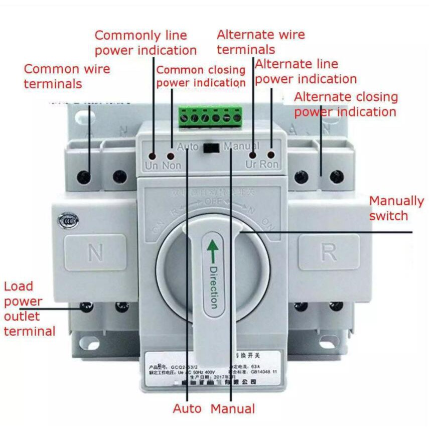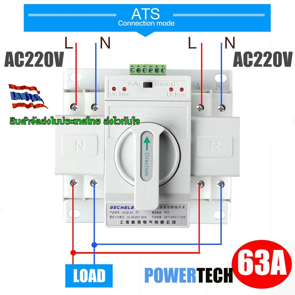 สวิตซ์สลับแหล่งจ่ายไฟ อัตโนมัติ ระบบไฟฟ้าสำรอง ATS Automatic Dual Power Transfer Switch 2P 63A