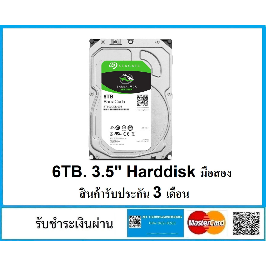 (มีส่งด่วน) 6TB. 3.5" Harddisk มือสอง สภาพสวย แถมกล่อง USB ไม่มีสายแถมให้ ใช้งานได้ปกติ รับประกัน 3 เดือน