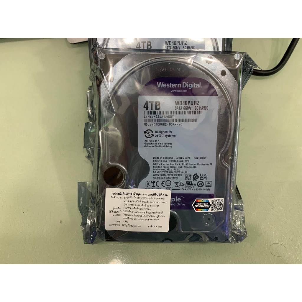 4TB. WD Purple WD40PURZ ของใหม่ รับประกันเกือบ 3 ปี 06/2025