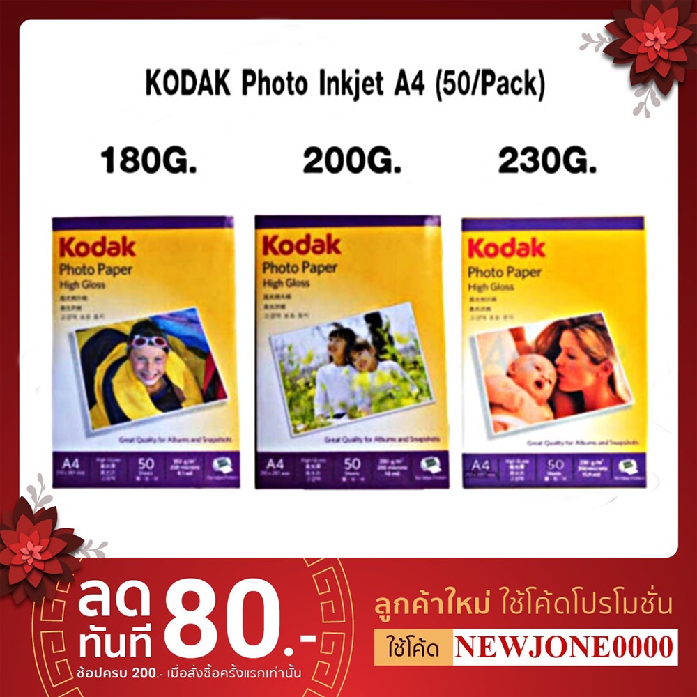 กระดาษโฟโต้ KODAK Photo Inkjet A4 180G. & 200G. & 230G. (50/Pack)