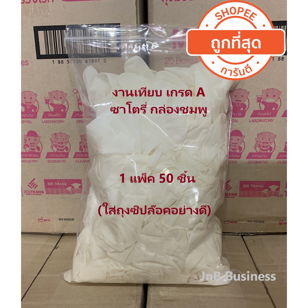 ถุงมือยาง มีแป้ง สีขาว [บรรจุ 50 ชิ้นต่อแพ็ค] งานเกรด A งานเทียบ ซาโตรี่ ศรีตรัง ผลิตจากน้ำยางธรรมชาติแท้ 100%