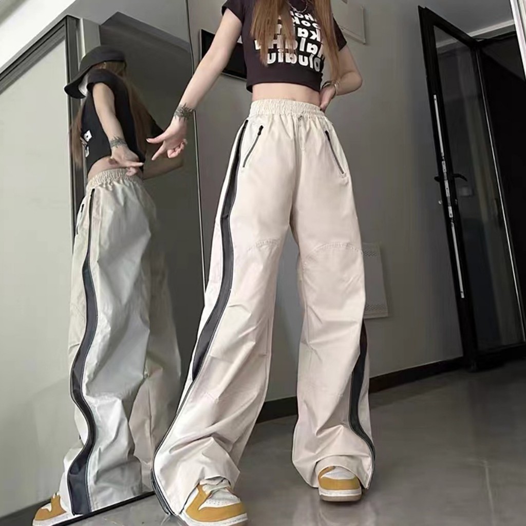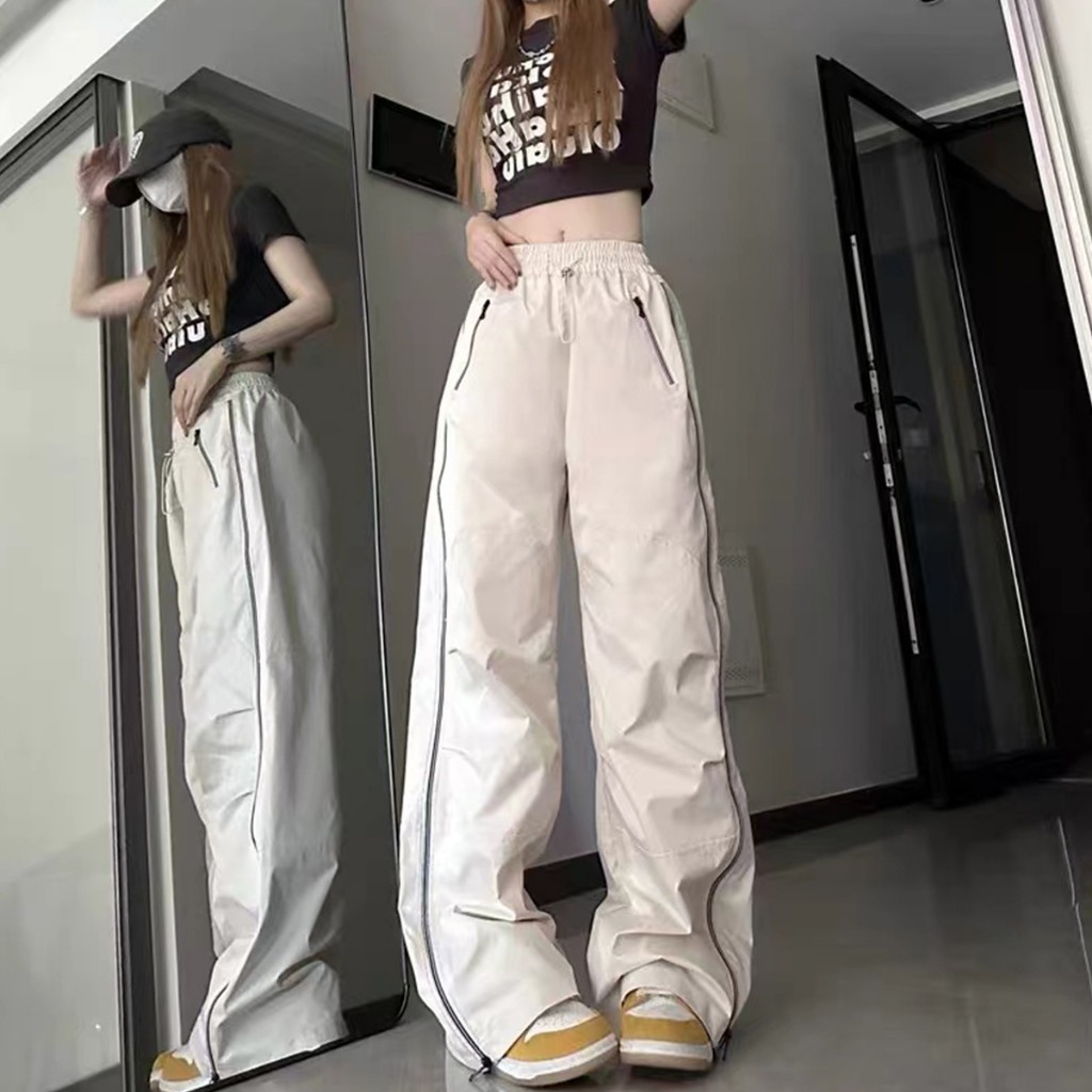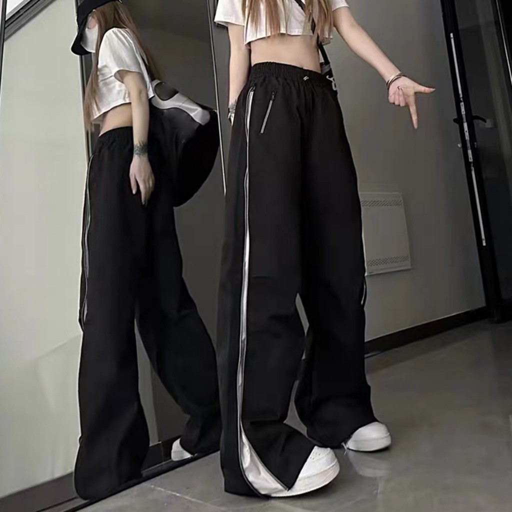 กางเกงแฟชั่นสตรี ทรงกว้าง แนวสตรีท ซิปข้าง