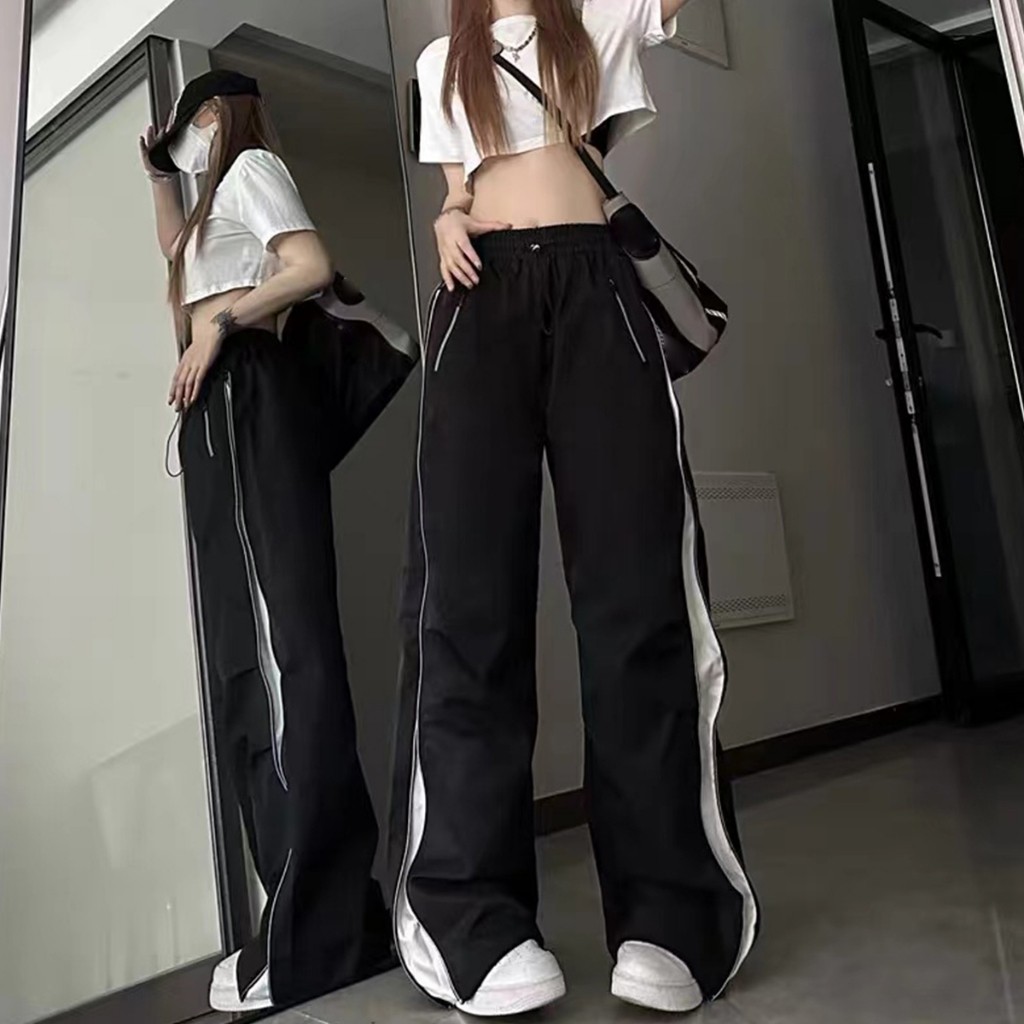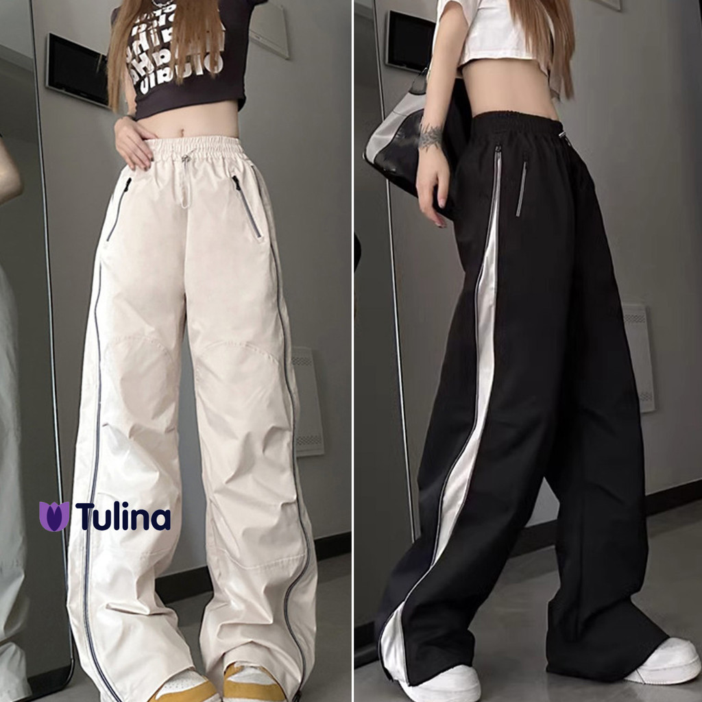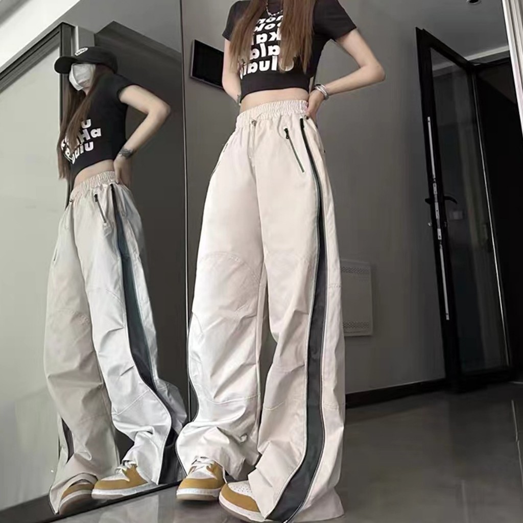 กางเกงแฟชั่นสตรี ทรงกว้าง แนวสตรีท ซิปข้าง