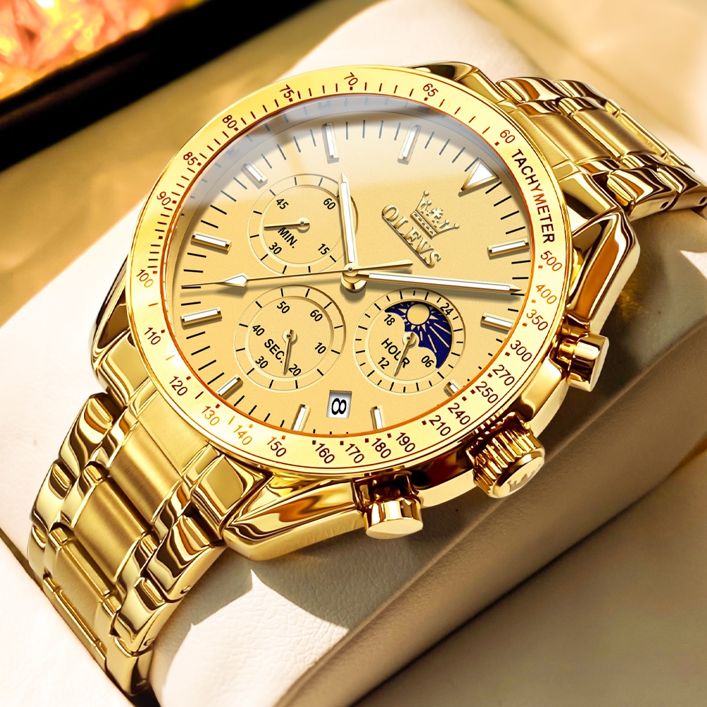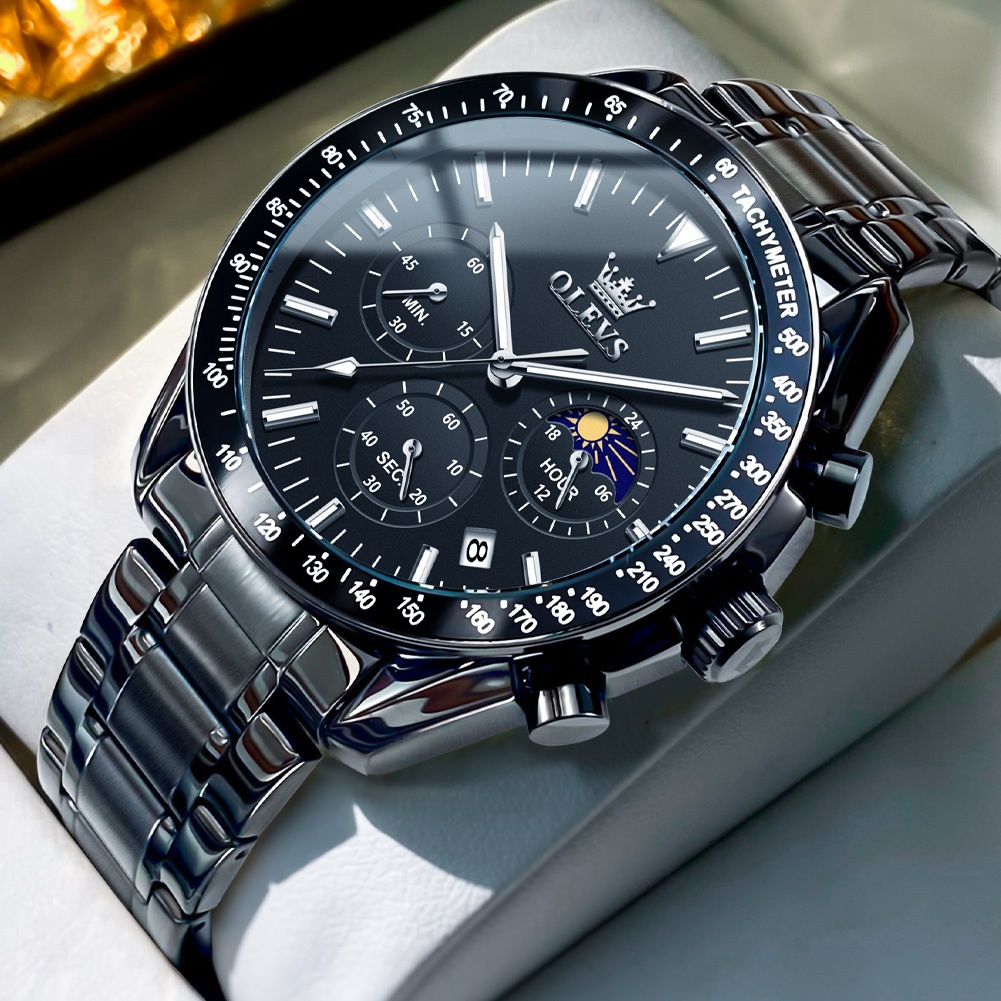 OLEVS มะกอก นาฬิกาผู้ชาย 100% สายสแตนเลสกันน้ําสไตล์ธุรกิจนาฬิกาควอตซ์ที่เรียบง่ายและมีสไตล์ขั้นสูงสีฟ้า 3618
