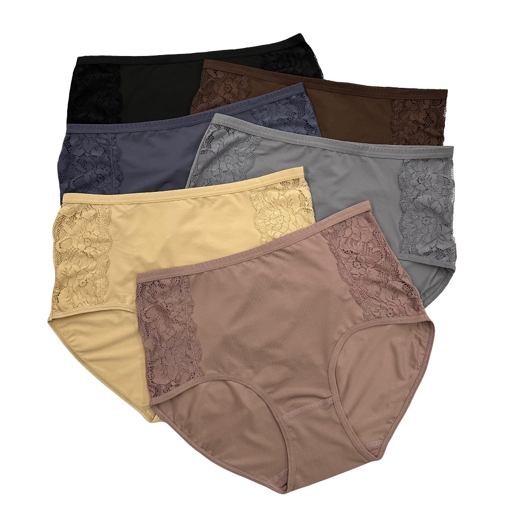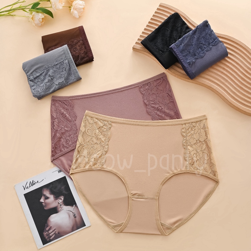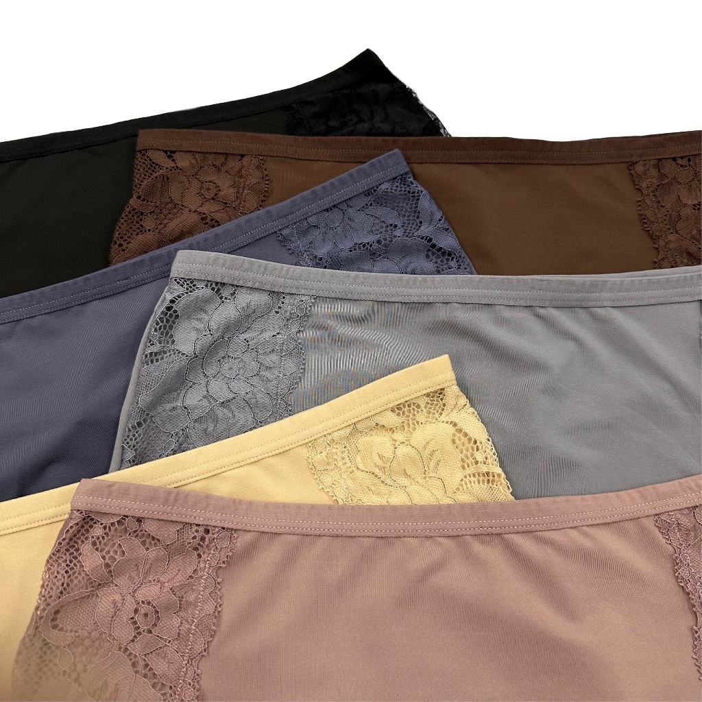 (ส่งจากไทย🇹🇭)กางเกงในผ้าลื่นสาวอวบ เอวสูง แต่งระบายลูกไม้ คุณภาพเทียบห้างเย็นสบายระบายอากาศได้ดี