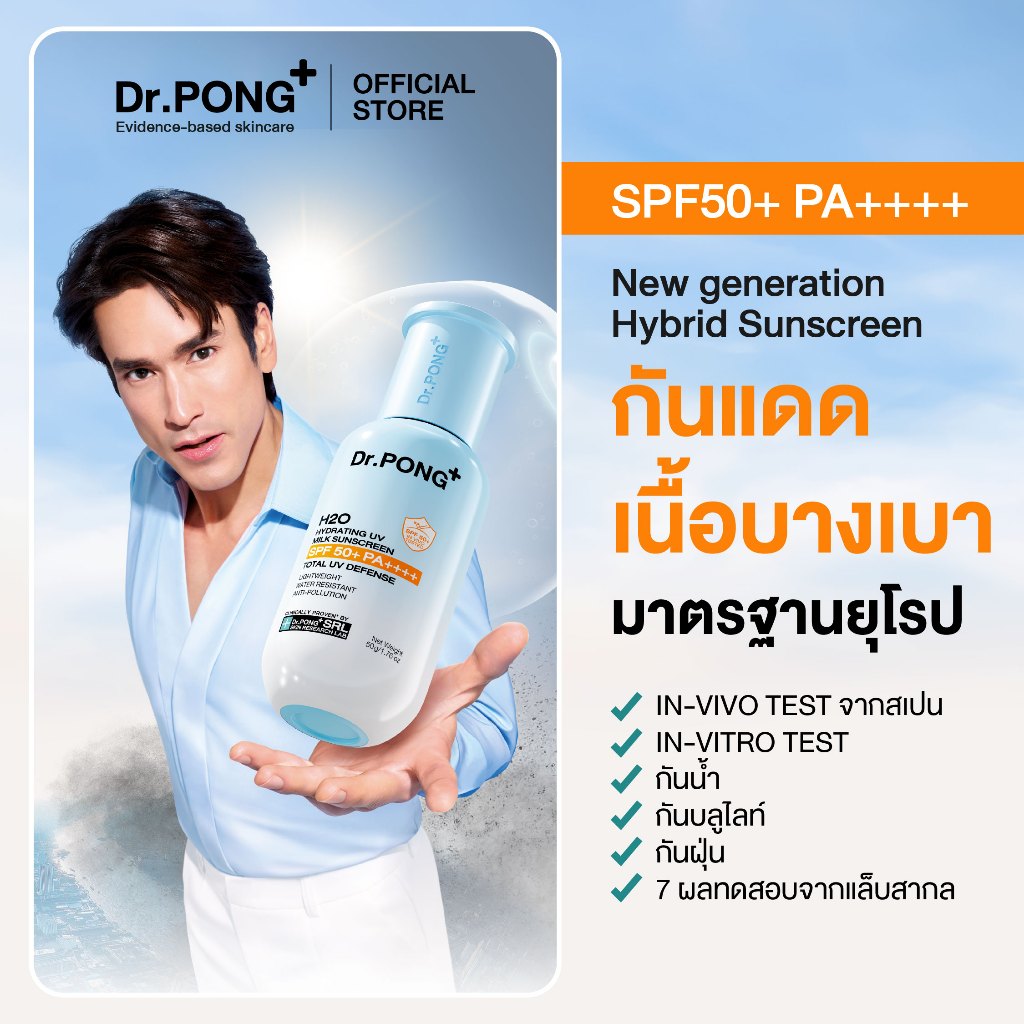 Dr.PONG รวมกันแดด 2 สูตร H2O กันแดดสูตรชุ่มชื้น & BLUE กันแดดสูตรผิวไบรท์ SPF50+ PA++++ Sunscreen(25g/50g)