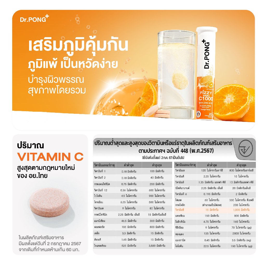 Dr.PONG FIZZY IMMU C1000 เม็ดฟู่วิตามินซี รสส้ม เสริมภูมิ 1000 มก ต้านหวัด อร่อย น้ำตาล 0%