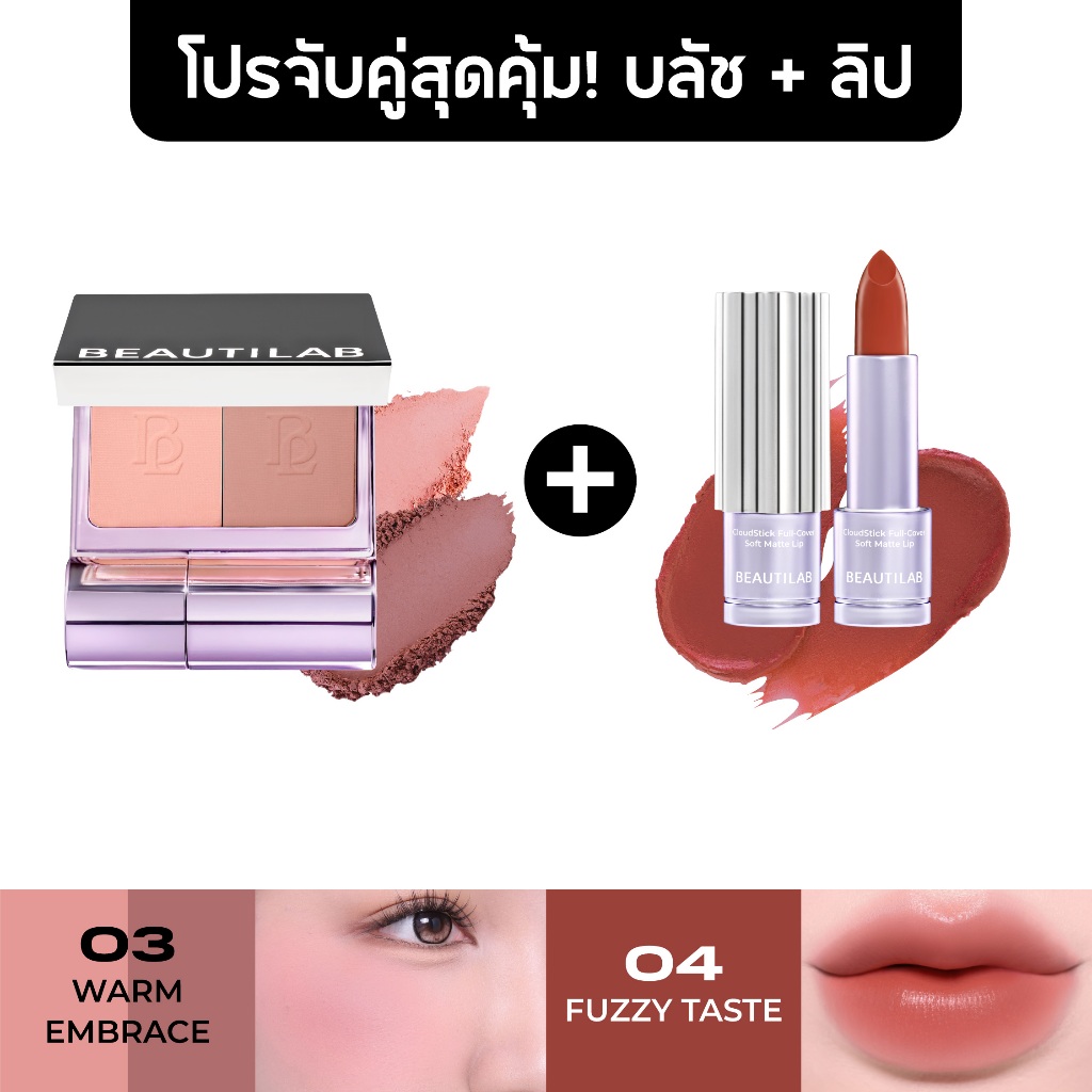 BEAUTILAB SET BLUSH + LIP โปรจับคู่ บลัช + ลิป บลัชออน 2 สี พร้อมแปรง ลิปเนื้อแมตต์ นุ่มละมุน สีชัด ติดทนนาน