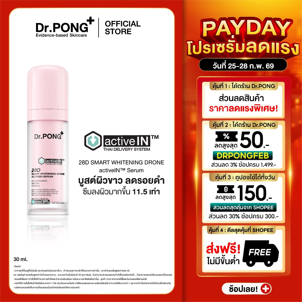 เซรั่มสูตรใหม่! Gen2 Dr.PONG 28D smart whitening drone activein serum เซรั่มบำรุงผิวกระจ่างใส