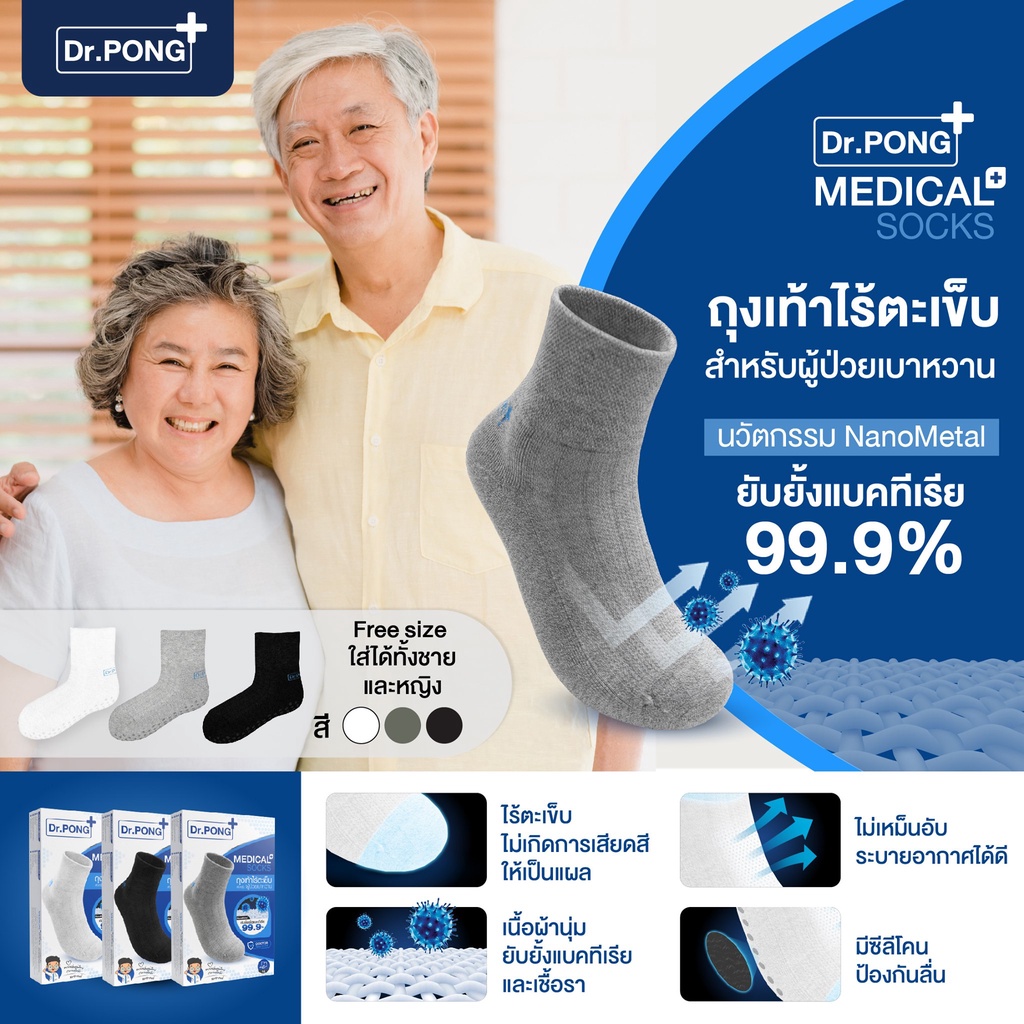 [1 แถม 1] Dr. PONG medical socks ถุงเท้าสุขภาพ ไร้กลิ่น ไร้ตะเข็บ anti-bacteria สำหรับ ผู้ป่วยเบาหวานและผู้สูงอายุ