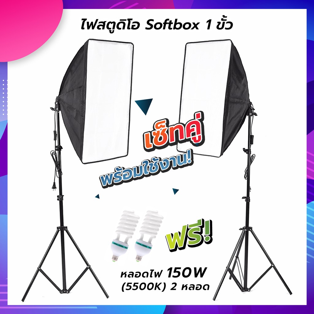 [เซ็ทคู่ พร้อมใช้งาน!] ชุดไฟสตูดิโอถ่ายภาพ แบบ 1 ขั้ว + ขาตั้งครบชุด [ฟรีหลอดไฟ] Studio softbox lights