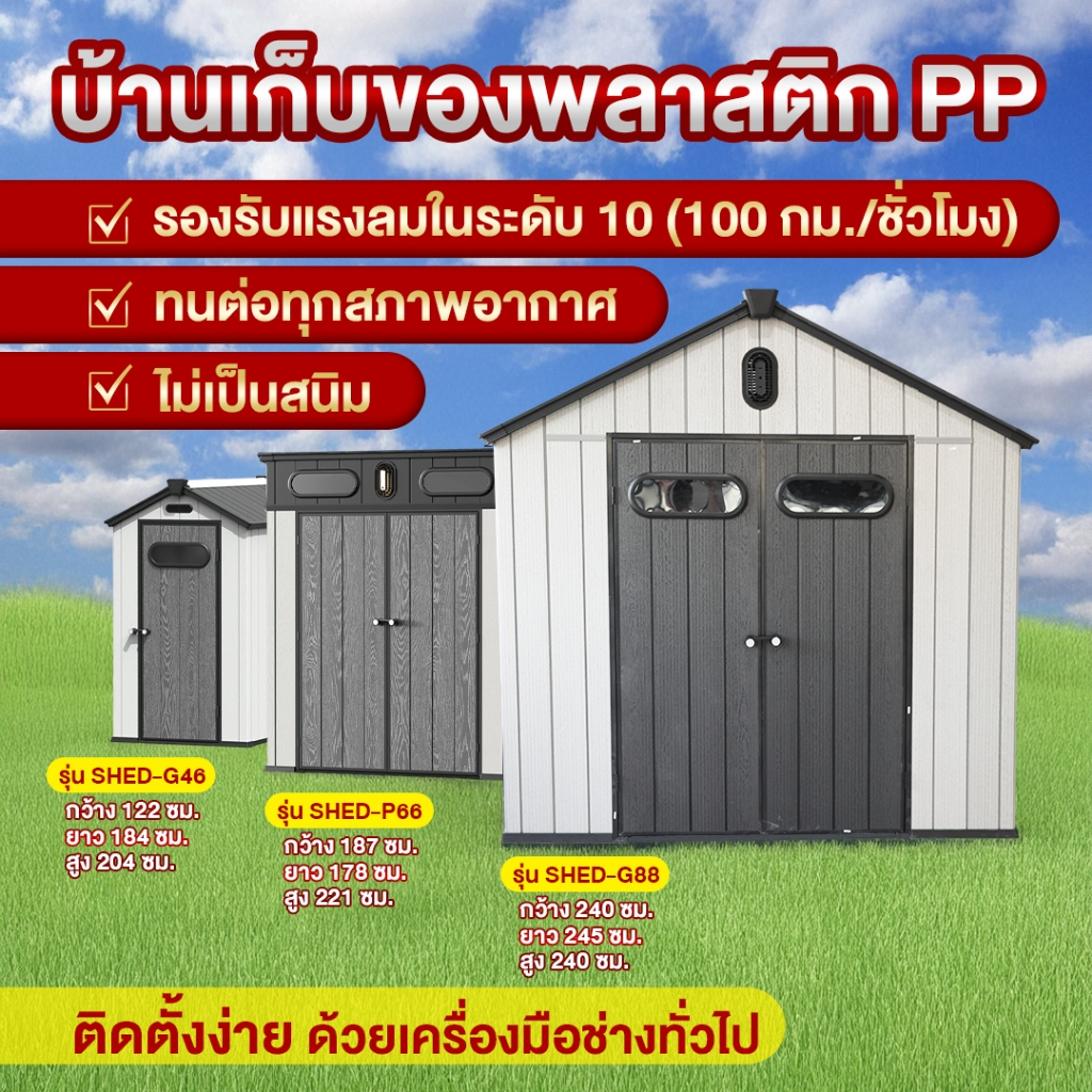 บ้านเก็บของ บ้านเก็บของกลางแจ้ง Storage Shed บ้านเก็บของพลาสติก PP (Polypropylene) รุ่น SHED-G46, G88, P66