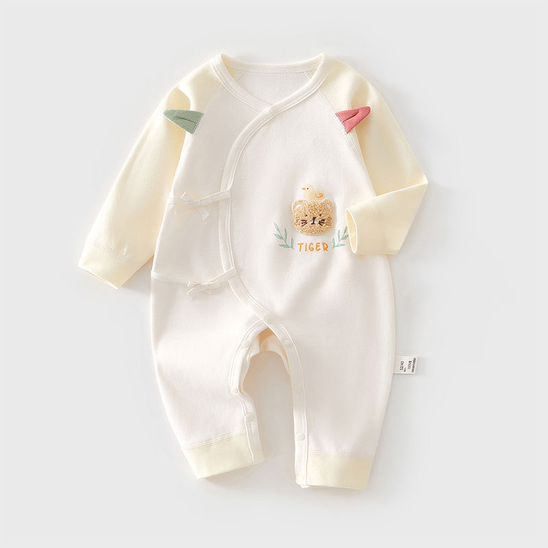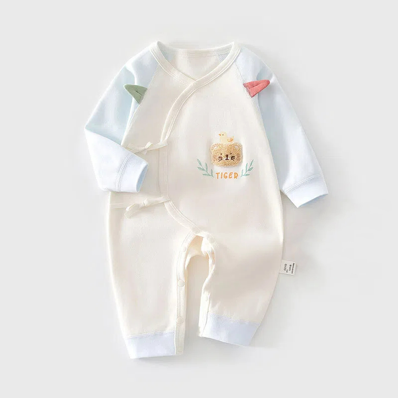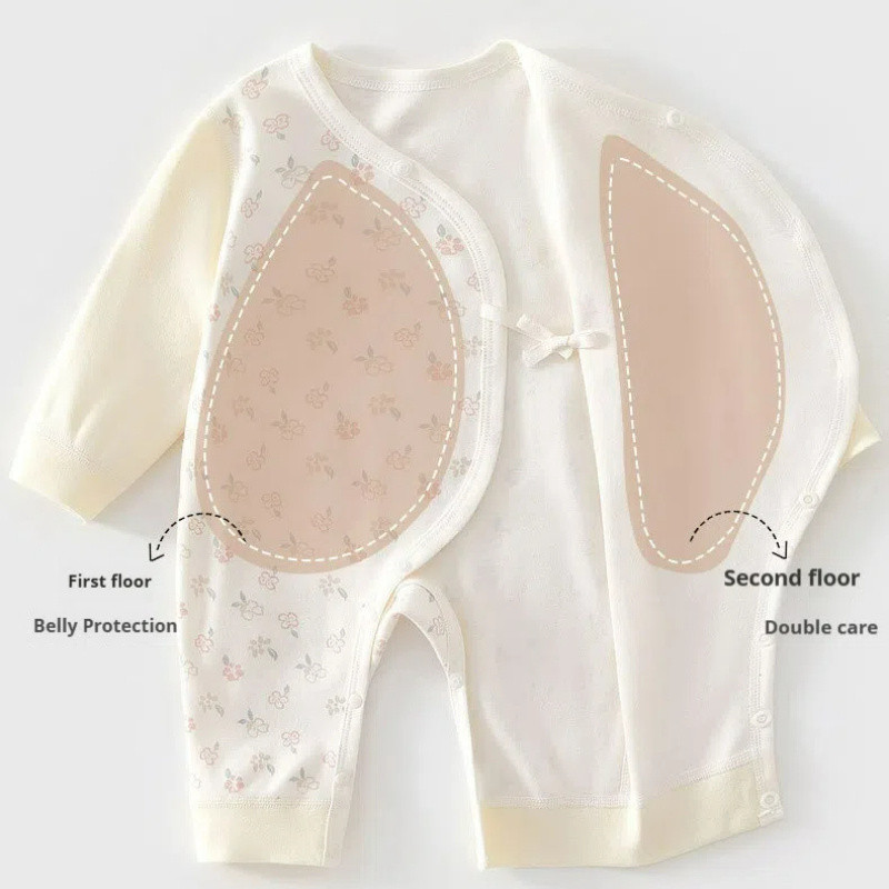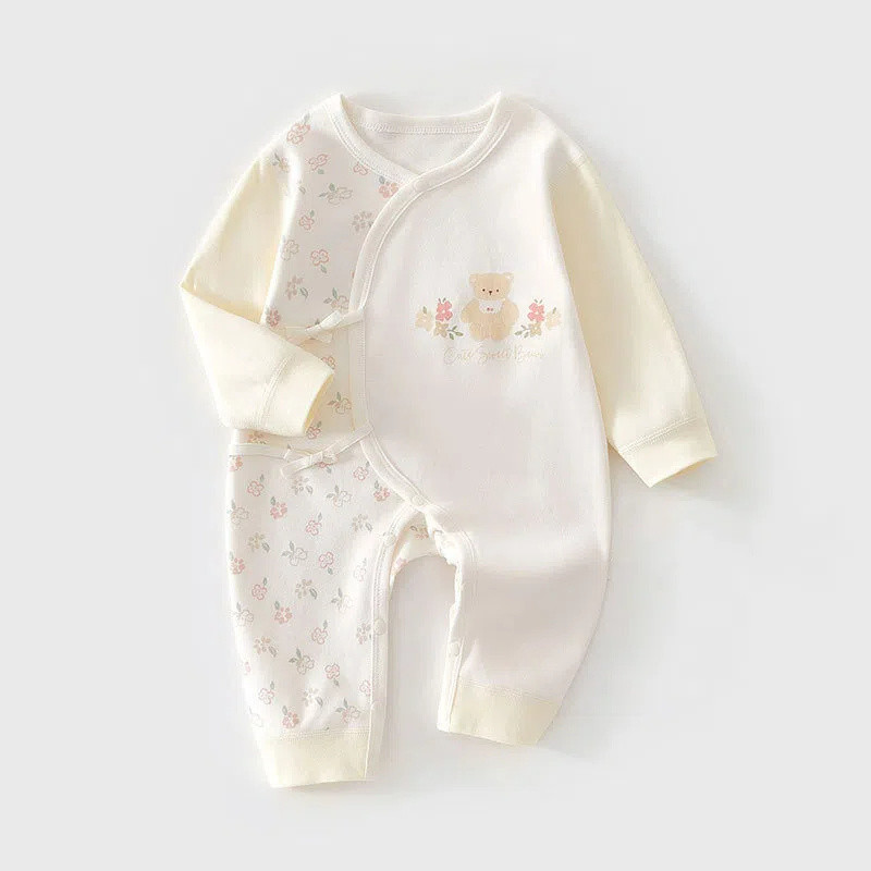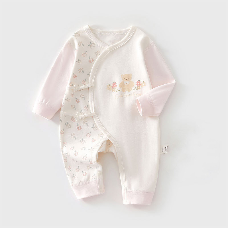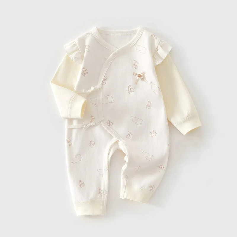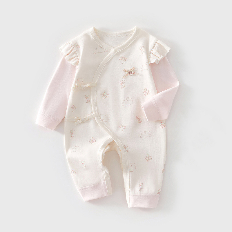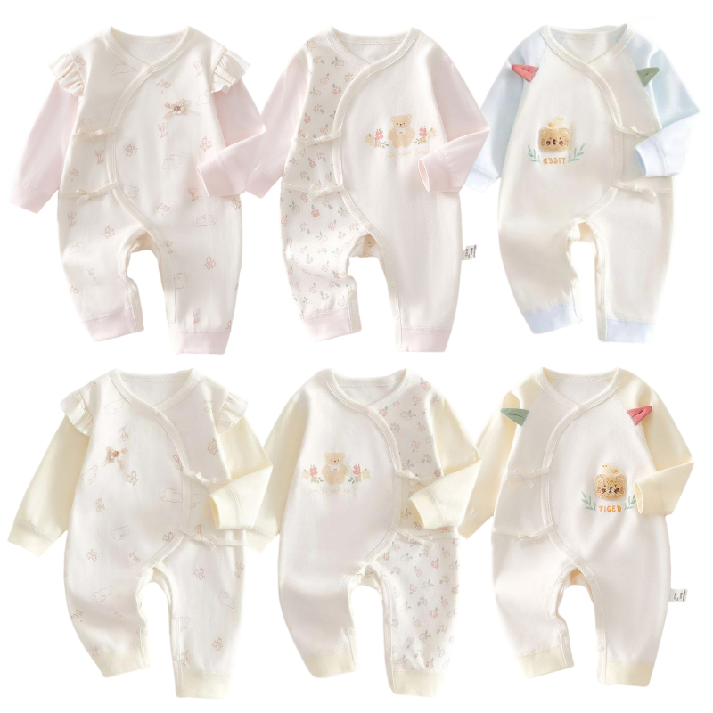 0-6ม ชุดจั๊มสูทแขนยาวทารกแรกเกิดเด็กผ้าฝ้ายลูกไม้ขึ้นชุดนอนชิ้นเดียว