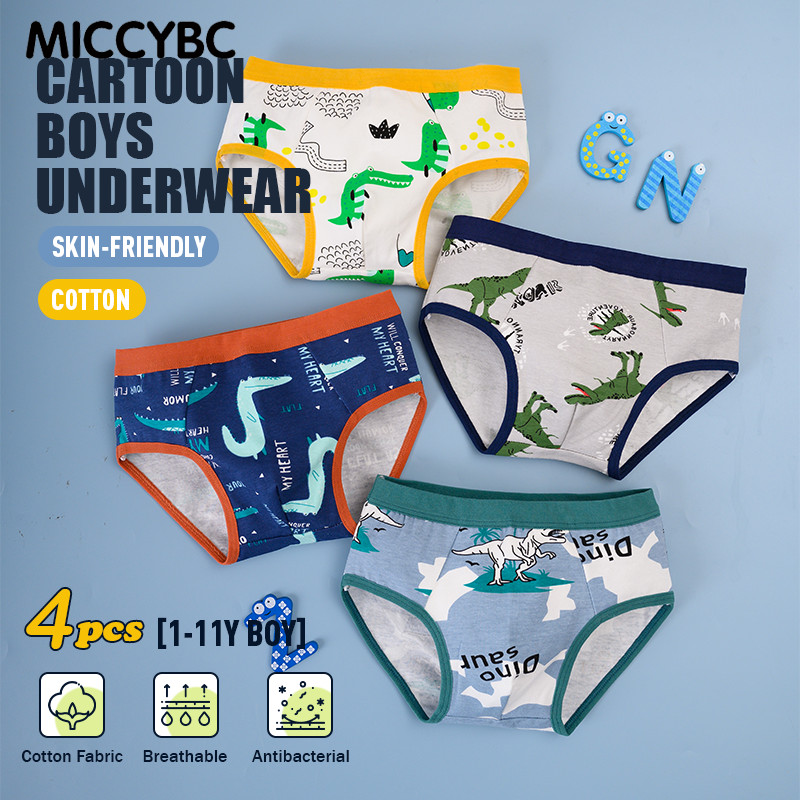 【Bangkok Delivery】4 ชิ้น กางเกงเด็กผ้าฝ้ายความปลอดภัย Antibiosis กางเกงขาสั้นการ์ตูนสัตว์ไดโนเสาร์พิมพ์กางเกงสําหรับเด็กเด็กทารก 1-11Y