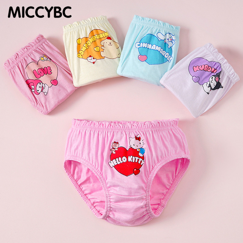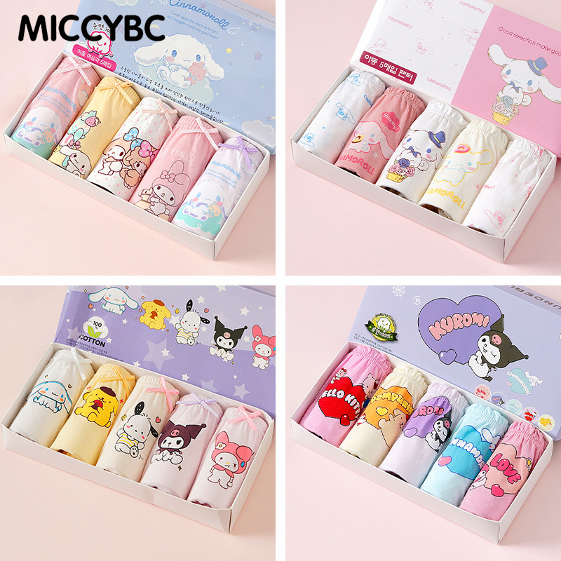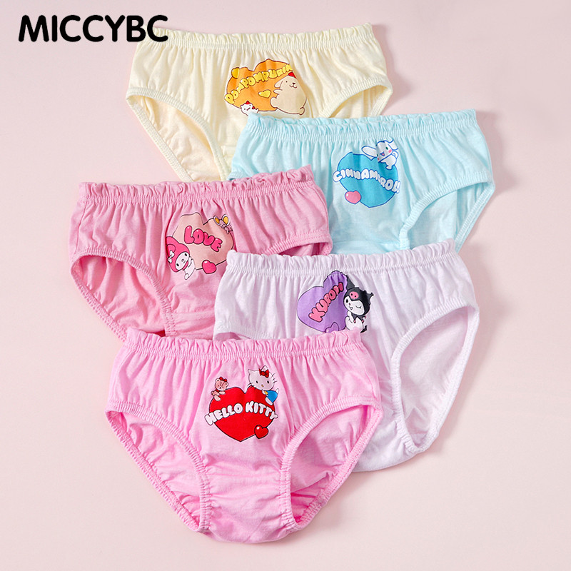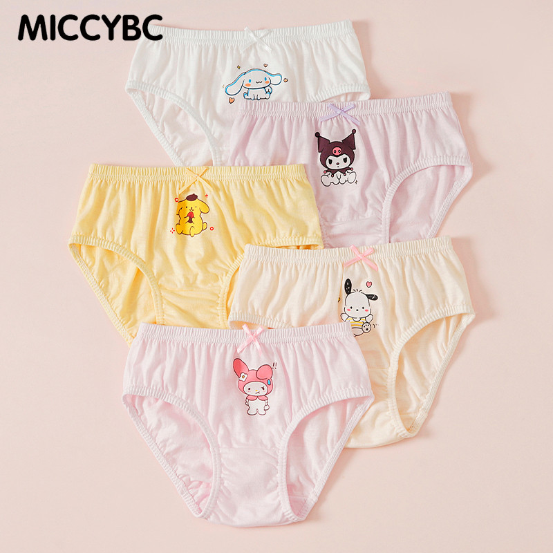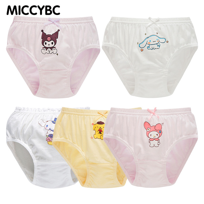 [MICCYBC]5 ชิ้น/กล่องสามเหลี่ยมชุดชั้นในสําหรับสาวผ้าฝ้ายแท้ Kuromi การ์ตูน Sanrio พิมพ์กางเกงสําหรับเด็ก 2-13Y