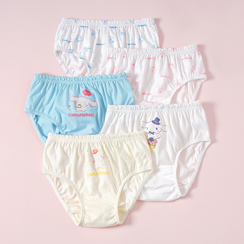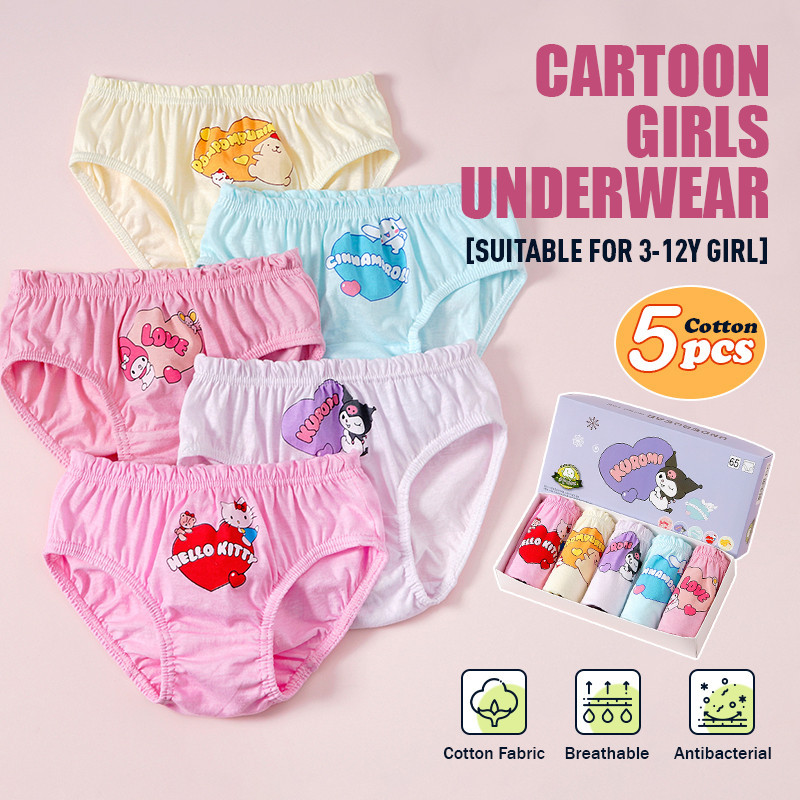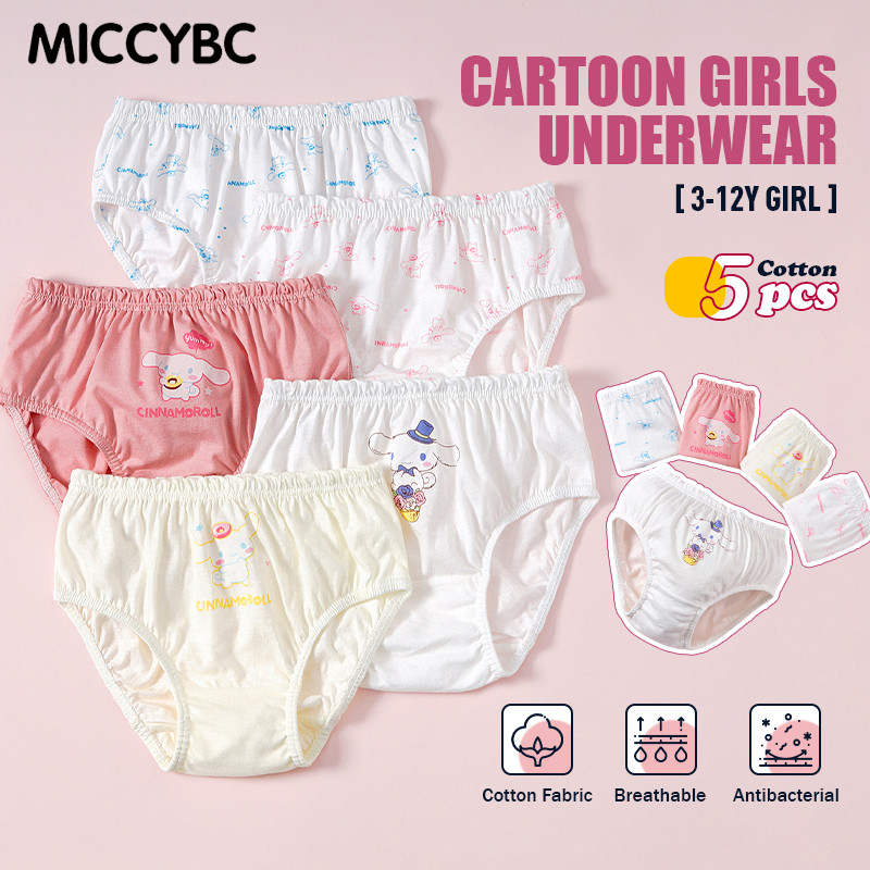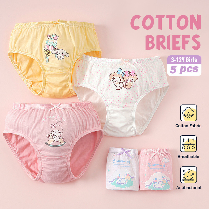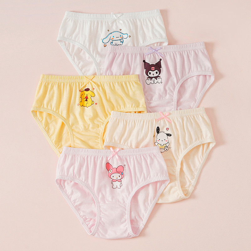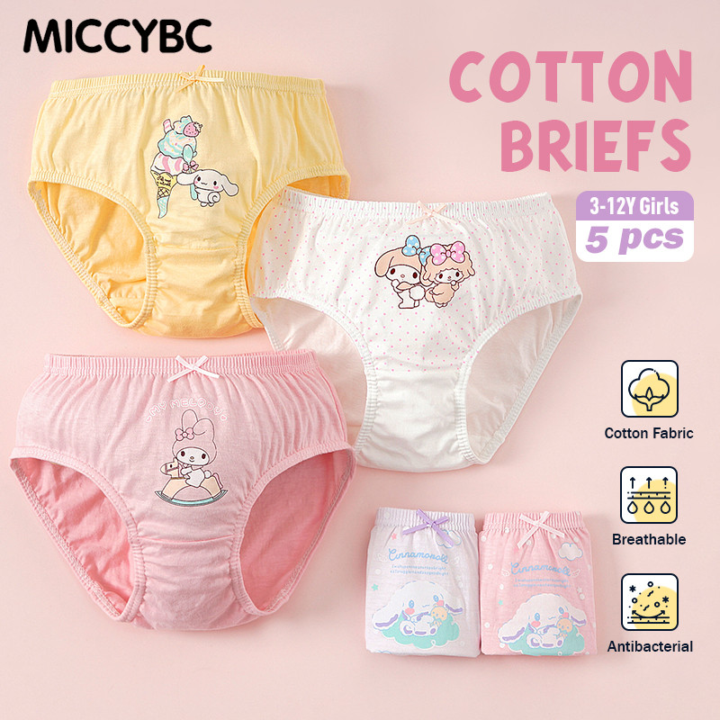 [MICCYBC]5 ชิ้น/กล่องสามเหลี่ยมชุดชั้นในสําหรับสาวผ้าฝ้ายแท้ Kuromi การ์ตูน Sanrio พิมพ์กางเกงสําหรับเด็ก 2-13Y