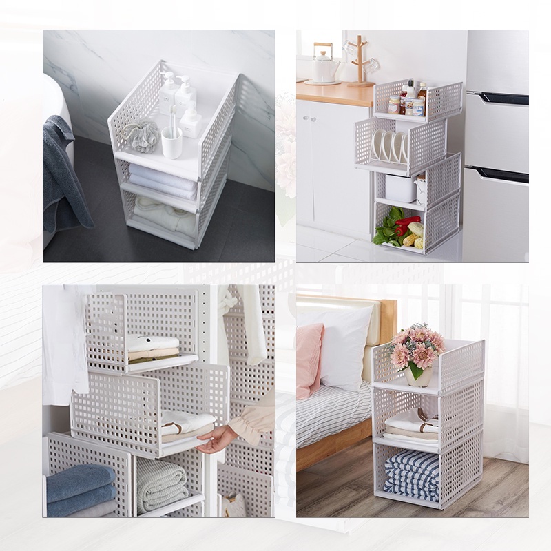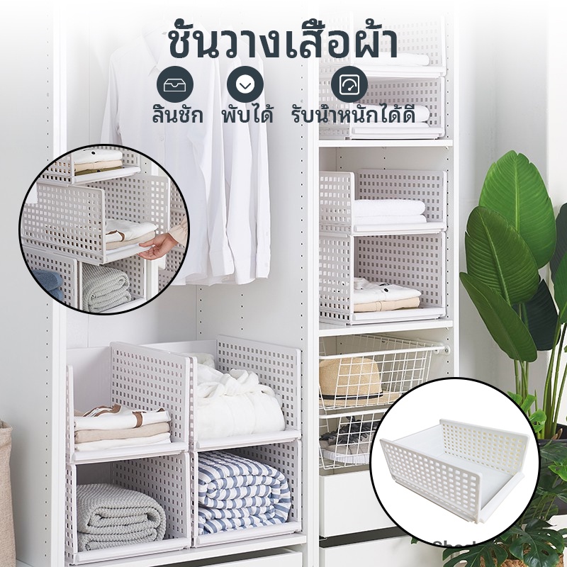 ชั้นวางเสื้อผ้า ตะกร้าเก็บของแบบลิ้นชัก ชั้นวางอเนกประสงค์ กล่องตะกร้าจัดเก็บเสื้อผ้าแบบถอดออกได้