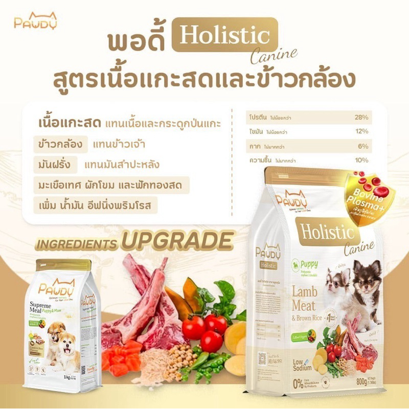 Pawdy อาหารสุนัขเกรดพรีเมียม Holistic สำหรับลูกสุนัข อายุ 2 เดือน -1 ปี สูตรเนื้อแกะและข้าวกล้อง ขนาด 800 กรัม