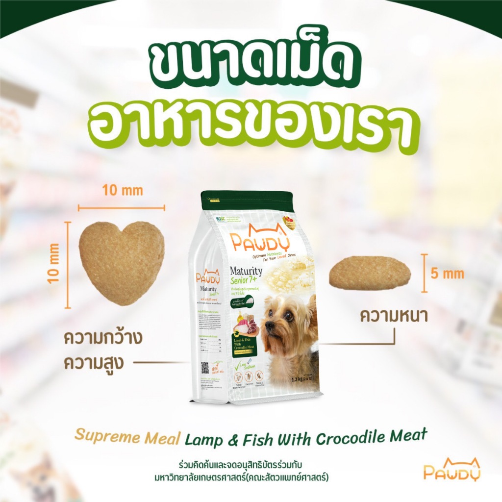 Pawdy อาหารสุนัขเกรดพรีเมียม สำหรับสุนัขสูงวัย อายุมากกว่า 7 ปี สูตรแกะและปลา ผสมเนื้อจระเข้ ขนาด 1.2 กก.
