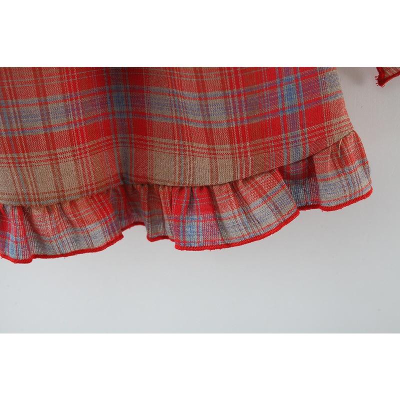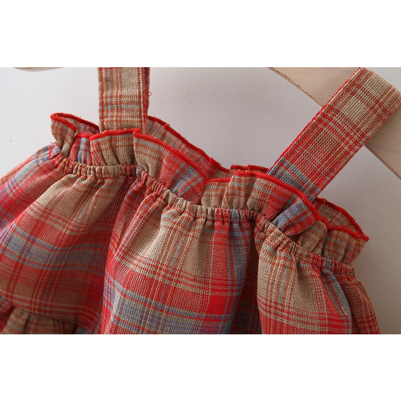 ฤดูร้อนใหม่สีแดงตาหมากรุกแขวนเด็กสาวชายหาดชุด,สไตล์เกาหลีของขวัญหมวกชายหาดเด็กเสื้อผ้าแขนกุด (9 เดือน -3 ปี)