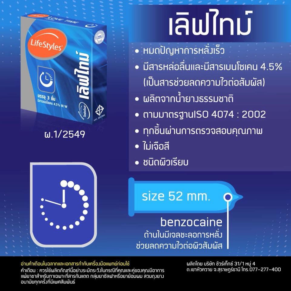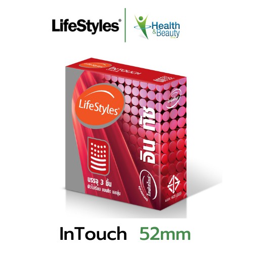 ถุงยางอนามัย Lifestyles lovetime 52mm, Intouch 52mm, fantasy 52mm, studded 52mm, sensitive 52mm, maxx 54mm 1กล่อง 3 ชิ้น