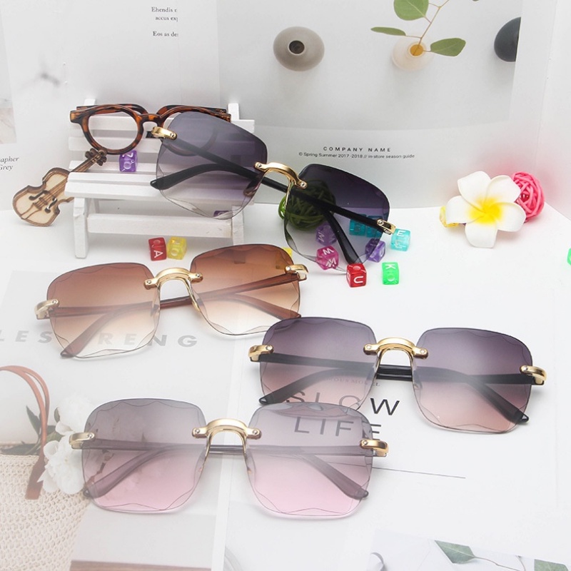 (JIUERBA) ใหม่ แว่นตากันแดด ไล่โทนสี ไม่มีขอบ ป้องกันรังสี UV400 แฟชั่นเรโทร สําหรับผู้หญิง