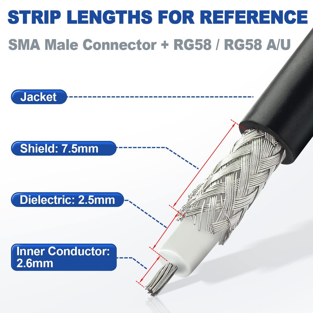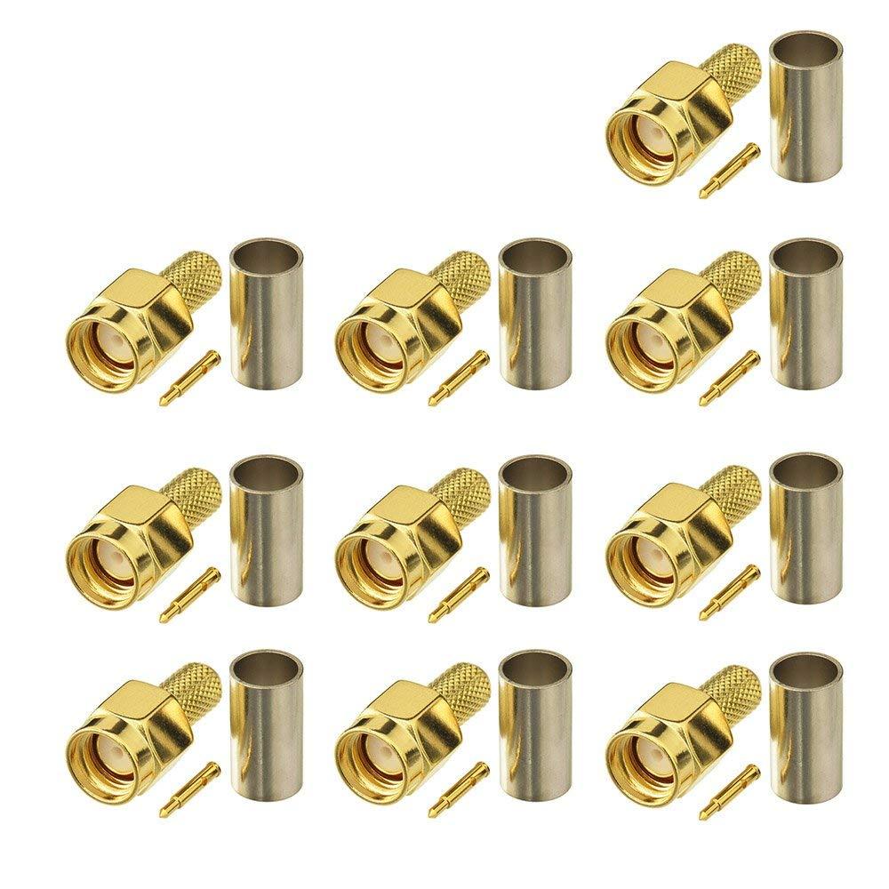 10 ชิ้น SMA ชายปลั๊ก Crimp RF Connector สําหรับ RG58 RG142 LMR195 Coaxial สาย