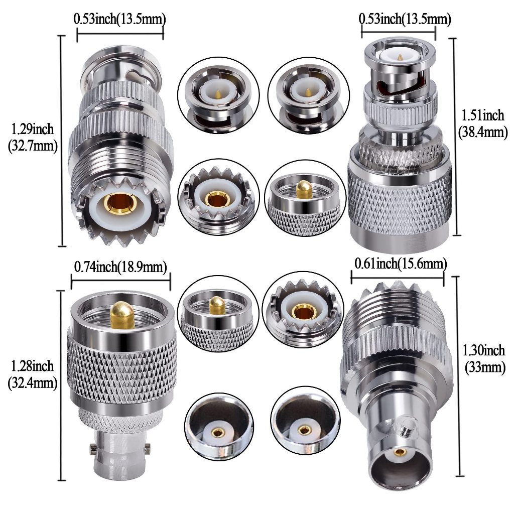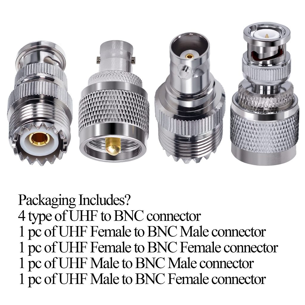 PL259 SO239 ถึง BNC อะแดปเตอร์ Coax Cable Connector, BNC ถึง UHF Adapter Kit ชายกับหญิง Cable Changers Coaxial Connector Kit สําหรับ CB วิทยุ, วิทยุ, เสาอากาศ, สายต่อ Coax Cable